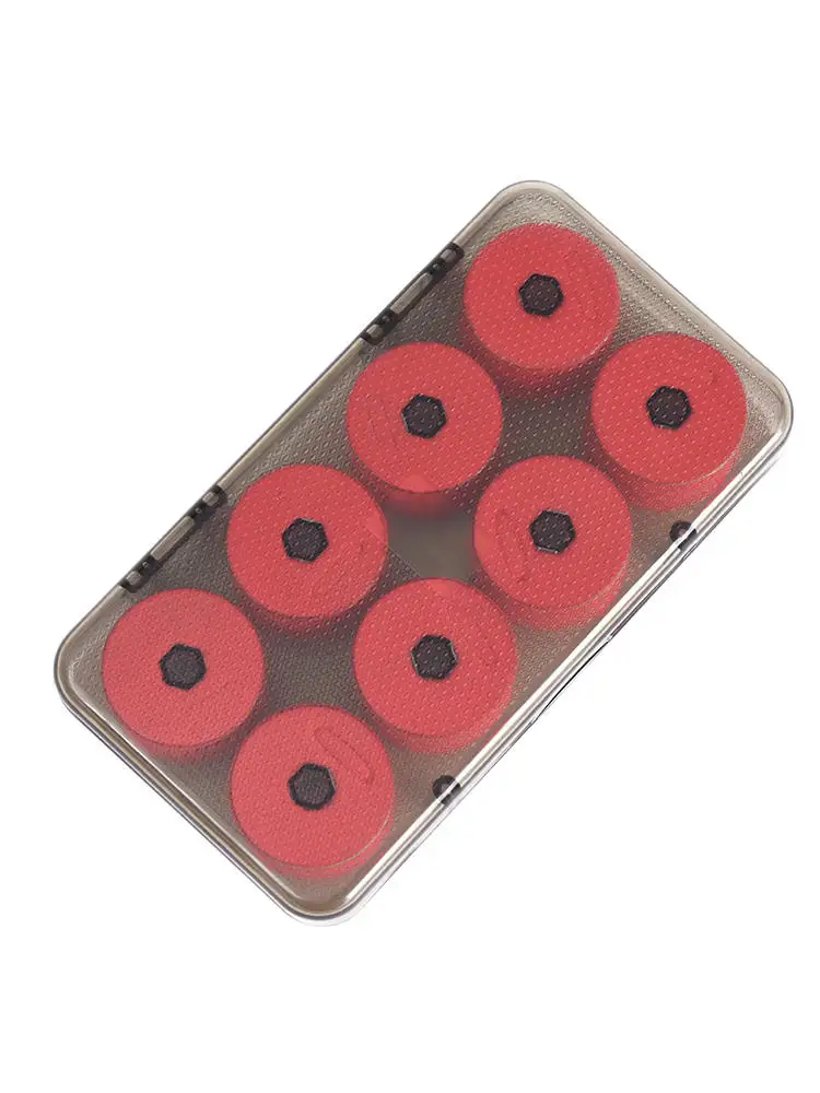 16 катушки для рыболовной лески, хранящиеся в жесткой пластиковой коробке
