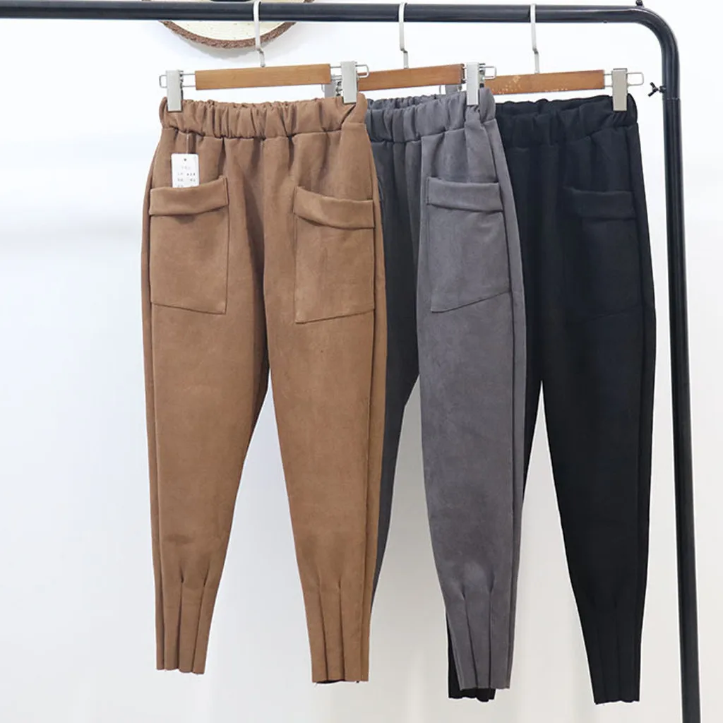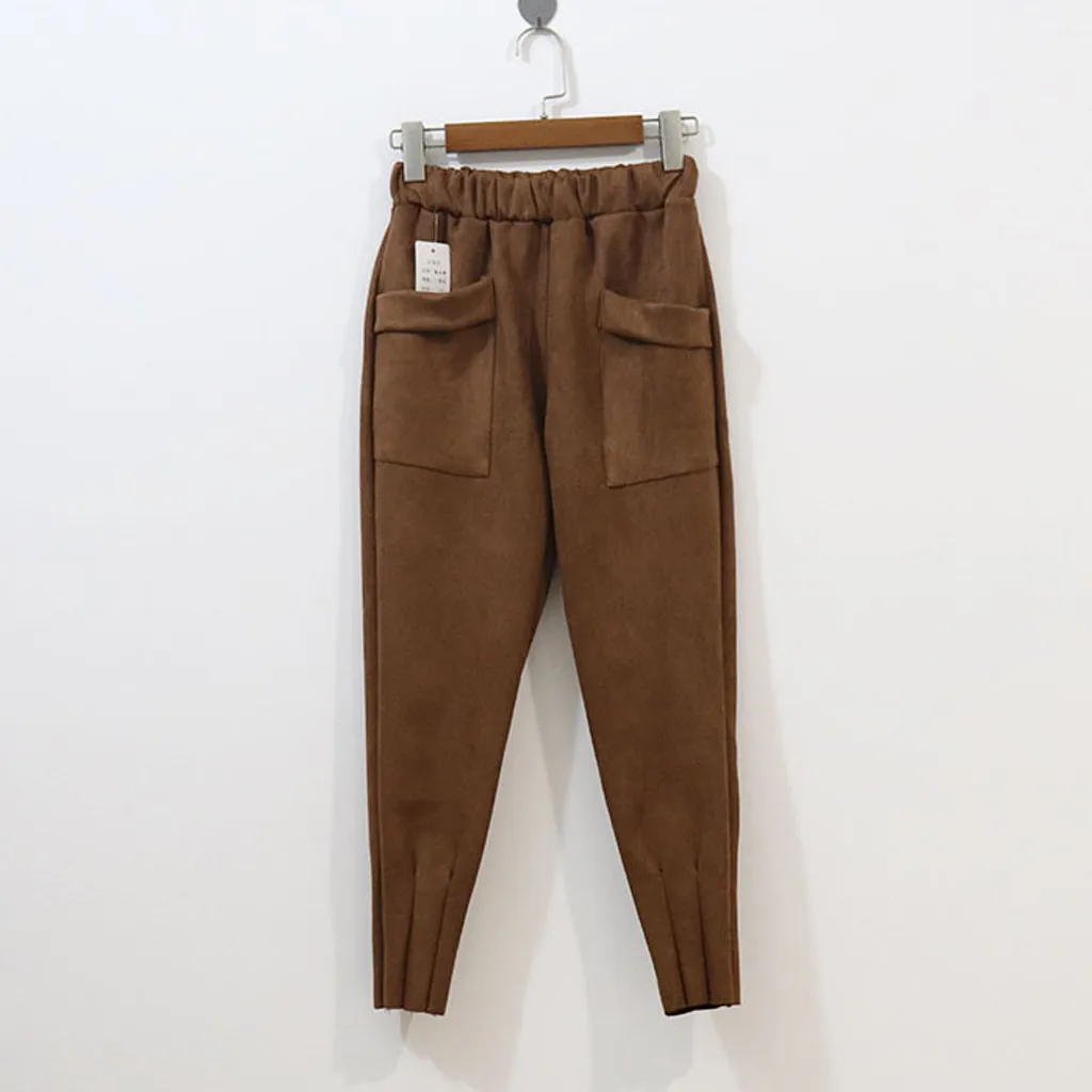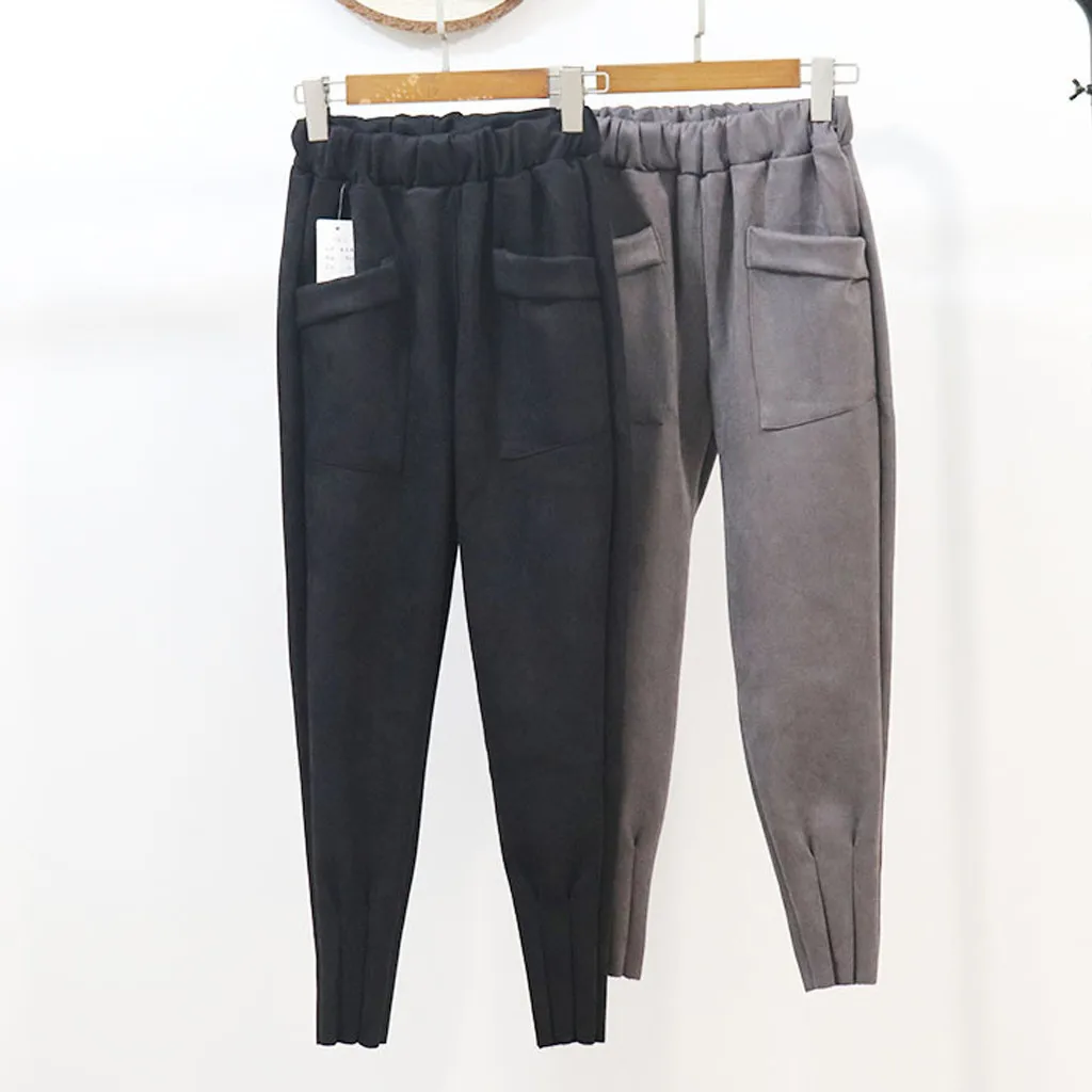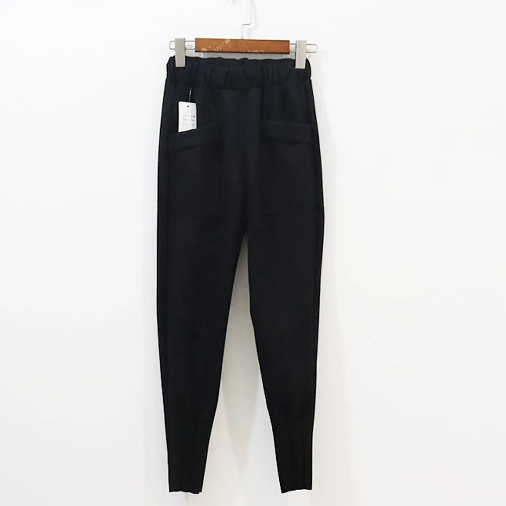 Модные женские повседневные брюки с высокой талией, повседневные однотонные женские длинные брюки-карандаш с карманами