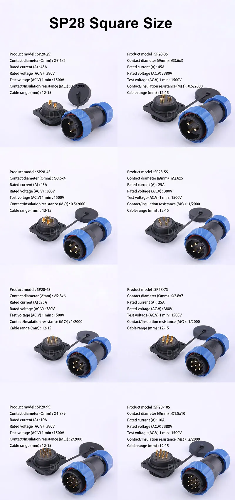 SP28 IP68 квадратный фланцевый кабель Водонепроницаемый авиационный разъем 2/3/4/5/6/7/9/10/12/14/16/19/22/24/26 контактный Электрический штепсельный разъем питания