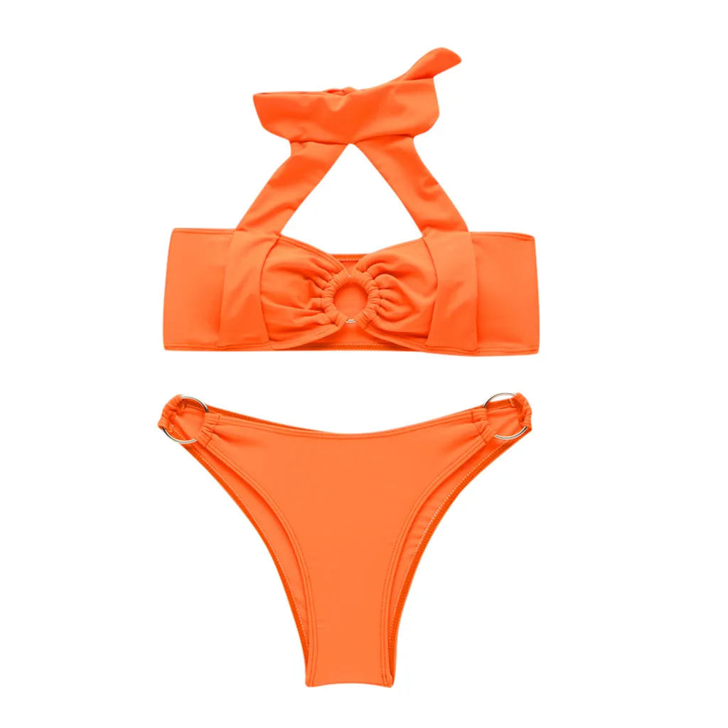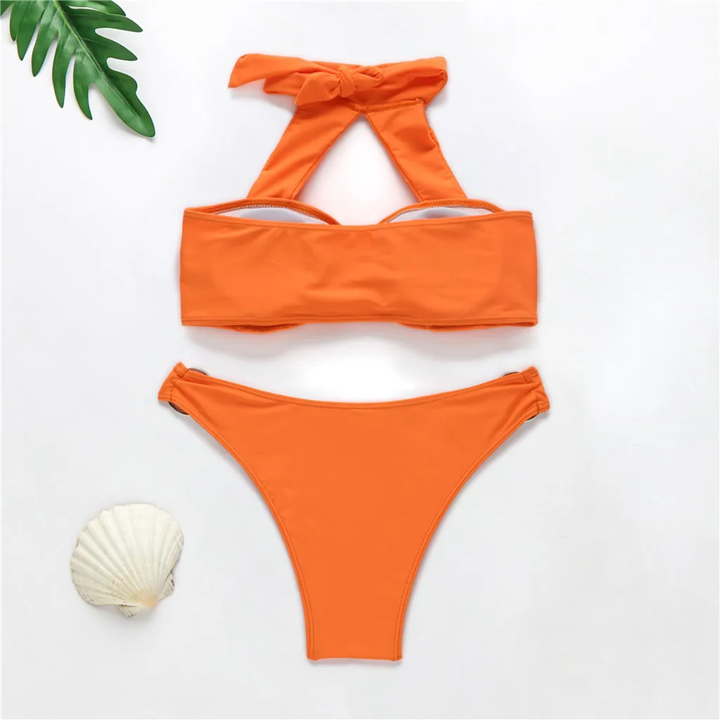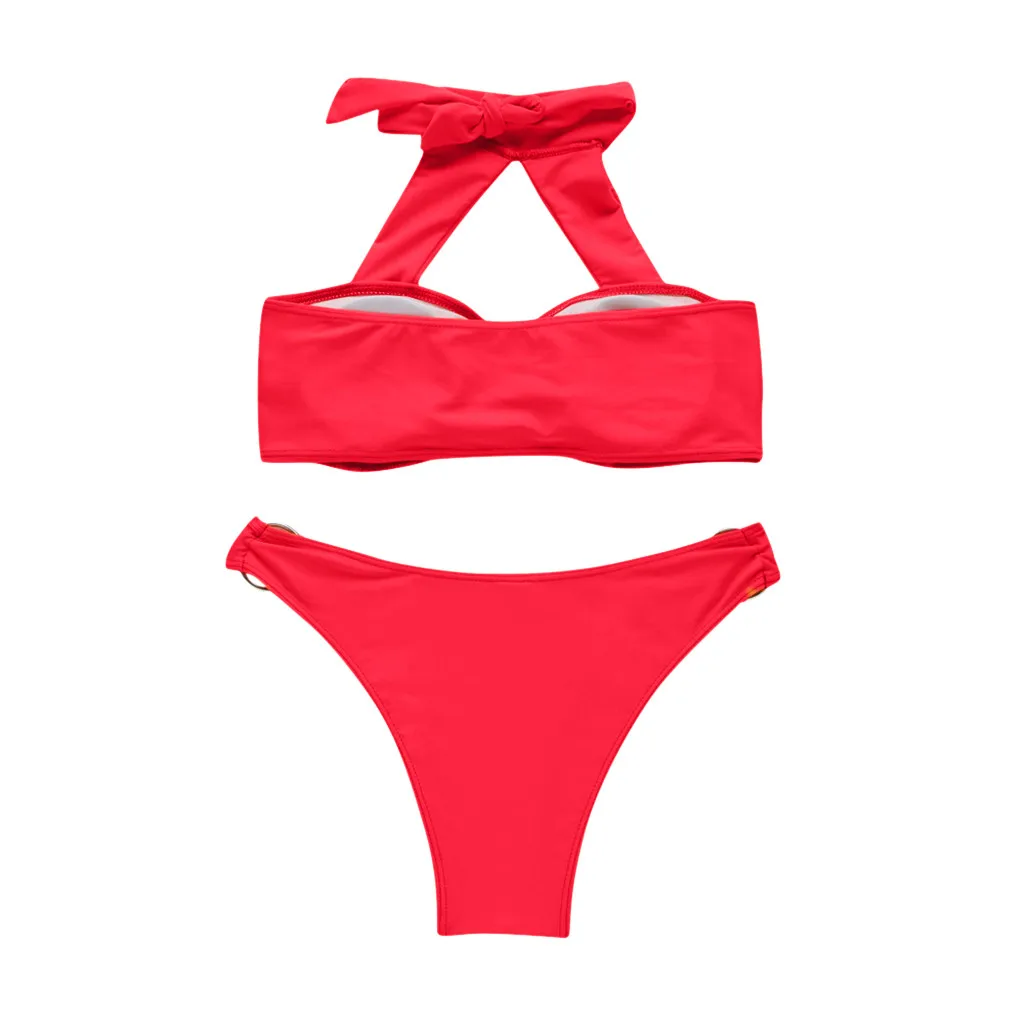 Новинка 2019, сексуальное бикини, женское мягкое удлиненное однотонное бикини пуш-ап, одежда для купания, чокер спереди, женское нижнее белье, комплект пляжного белья
