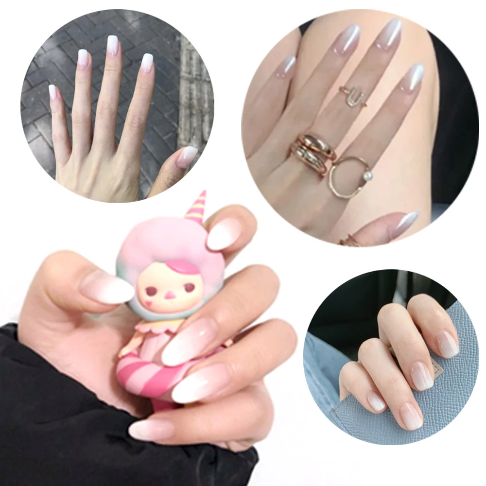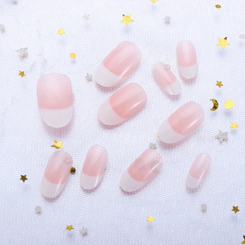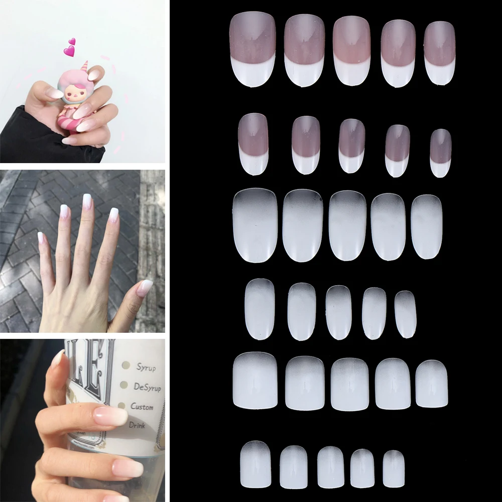 24/100 шт желе телесный белый градиент французские накладные ногти с клеем розовые средние натуральные острые полное покрытие поддельные ногти инструменты для маникюра