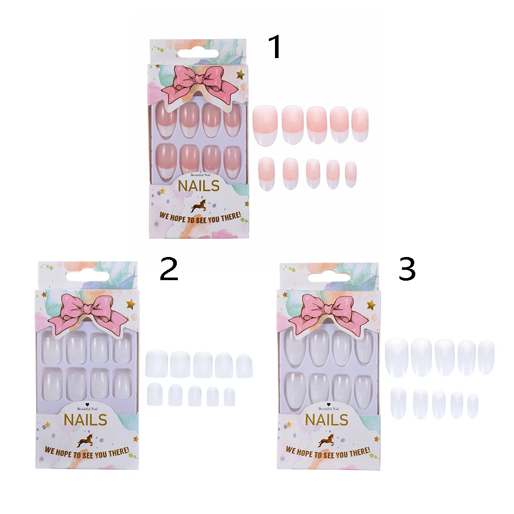 100% новый и высокое качество Тип: Полное покрытие для ногтей Цвет: телесный, белый Размер: (полный размер) Количество: 24/100 шт Посылка включает в себя: 24 шт. + 1 клей/100 шт. накладные ногти Из-за разницы между различными мониторами изображение может не отражать фактический цвет изделия. Пожалуйста, поймите, спасибо.