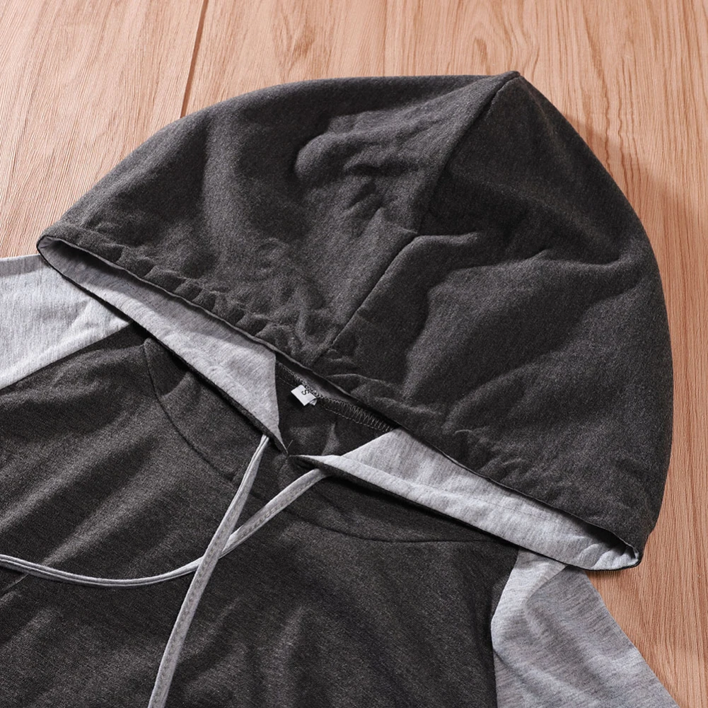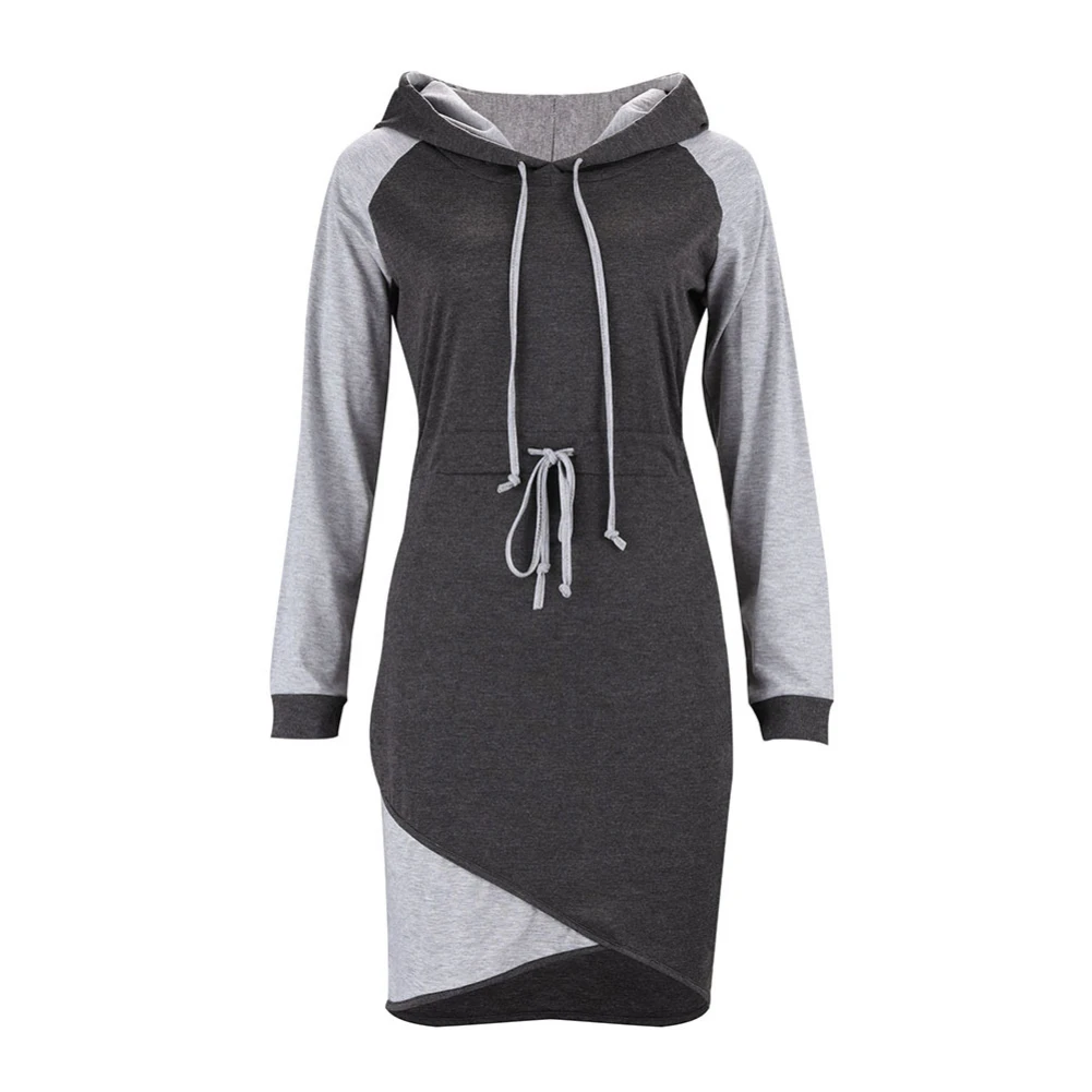 Женское Повседневное платье с длинным рукавом серого и черного цвета в стиле пэчворк, обтягивающие платья на талии, облегающее платье с капюшоном на завязках, сексуальное платье vestidos