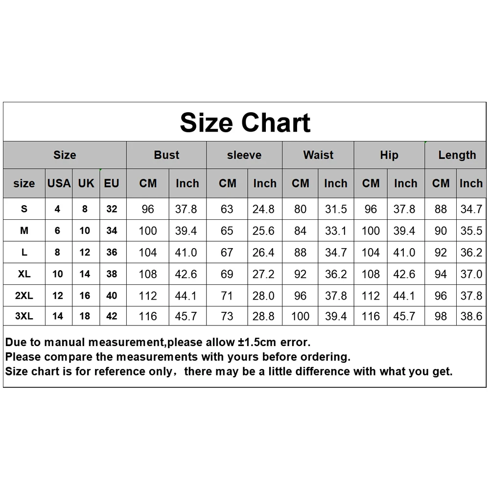 [Наш Размер 3XL] Обхват груди: 116 см/45,7 дюйма, обхват талии: 100 см/39,4 дюйма, обхват бедер: 116 см/45,7 дюйма, длина рукава: 73 см/28,8 дюйма, длина: 98 см/38,6 "(прибл.)