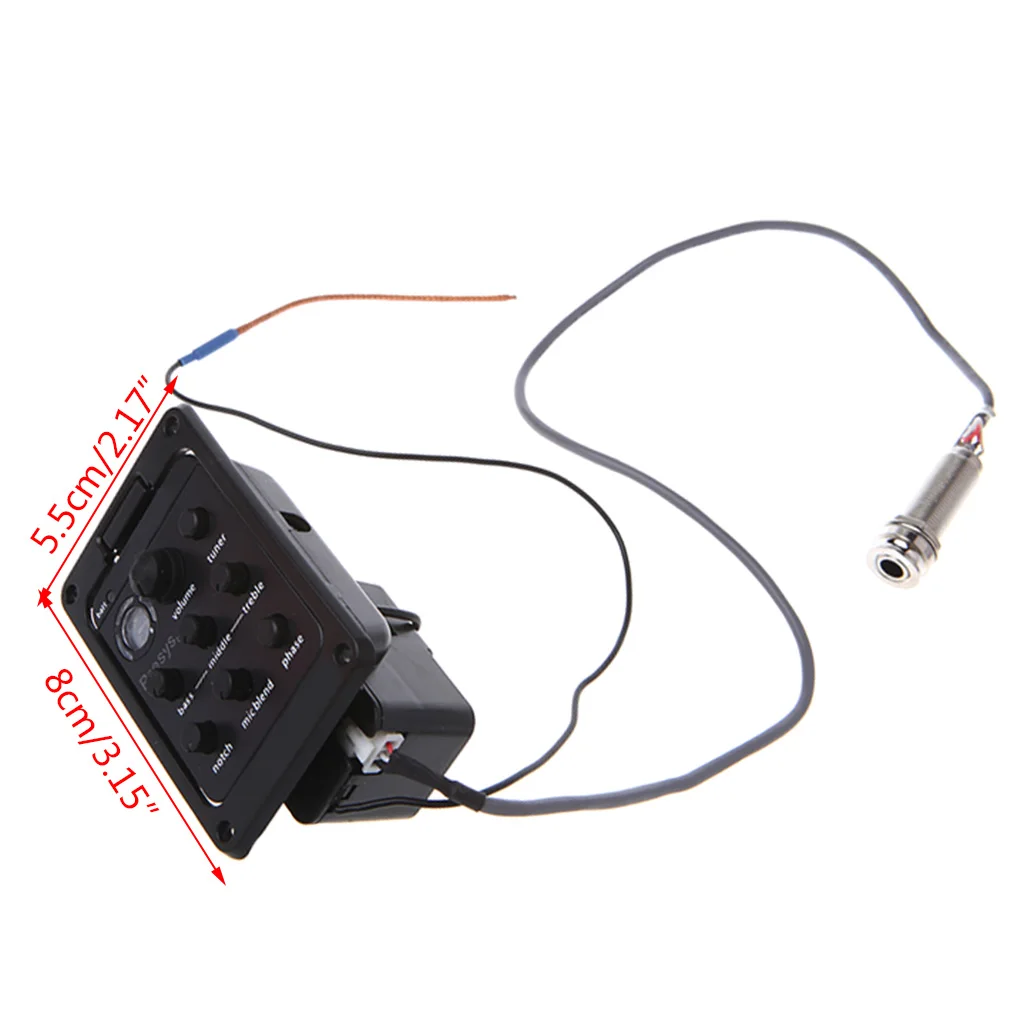 Маленький размер подходит для многих гитар Регулятор громкости Регуляторы низких, средних и высоких частот Встроенный тюнер светодиодный светодиодным дисплеем Фазовый переключатель Уникальный поворотный дизайн для мгновенного доступа к 9-вольтовому аккумулятору Проводной звукосниматель для установки без припоя, plug and play Низкопрофильные ручки управления Встроенный антиотзывы тный контроль Контроль яркости для дополнительной формы тона Встроенный микрофон с микрофоном и регулировкой уровня