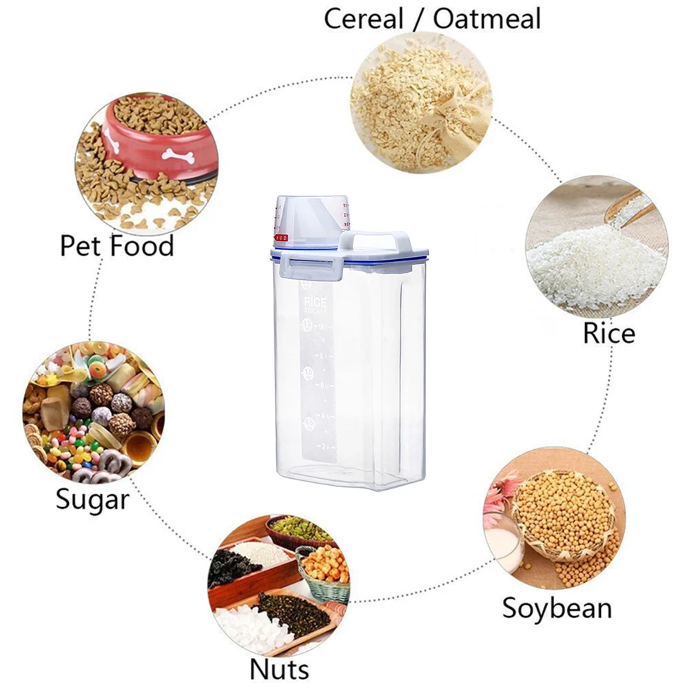 1. Превосходное качество PP материала, безопасный и здоровый, прочный, прозрачный бочонок, сильное запечатывание, 2500 мл большой емкости, может хранить сухие корм для домашних животных и другие сухие товары