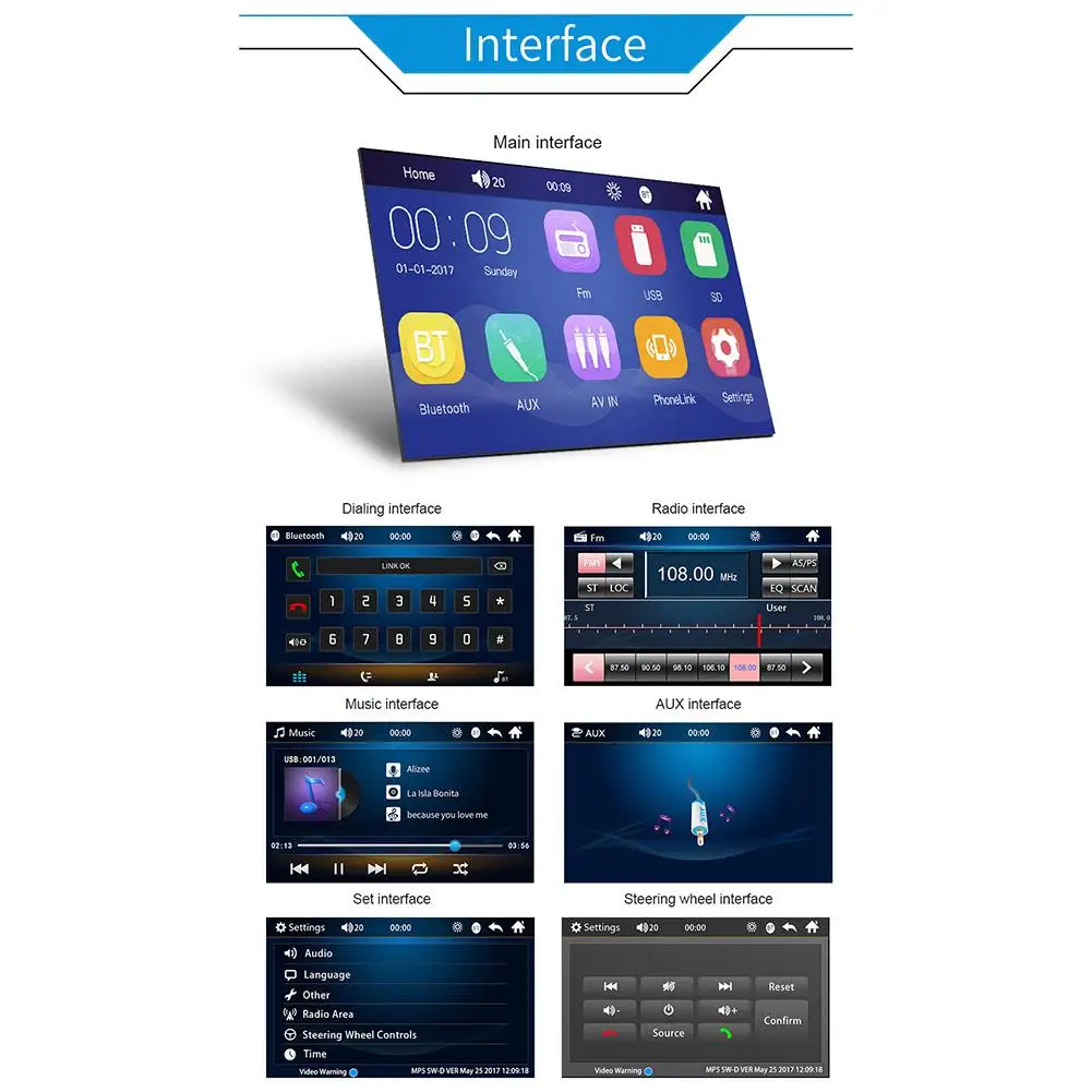 7in 2 DIN MP5 Car Player Bluetooth Touch Screen Stereo Radio Camera USB /TF FM Rear View Camera Input Android IOS Mirror Link