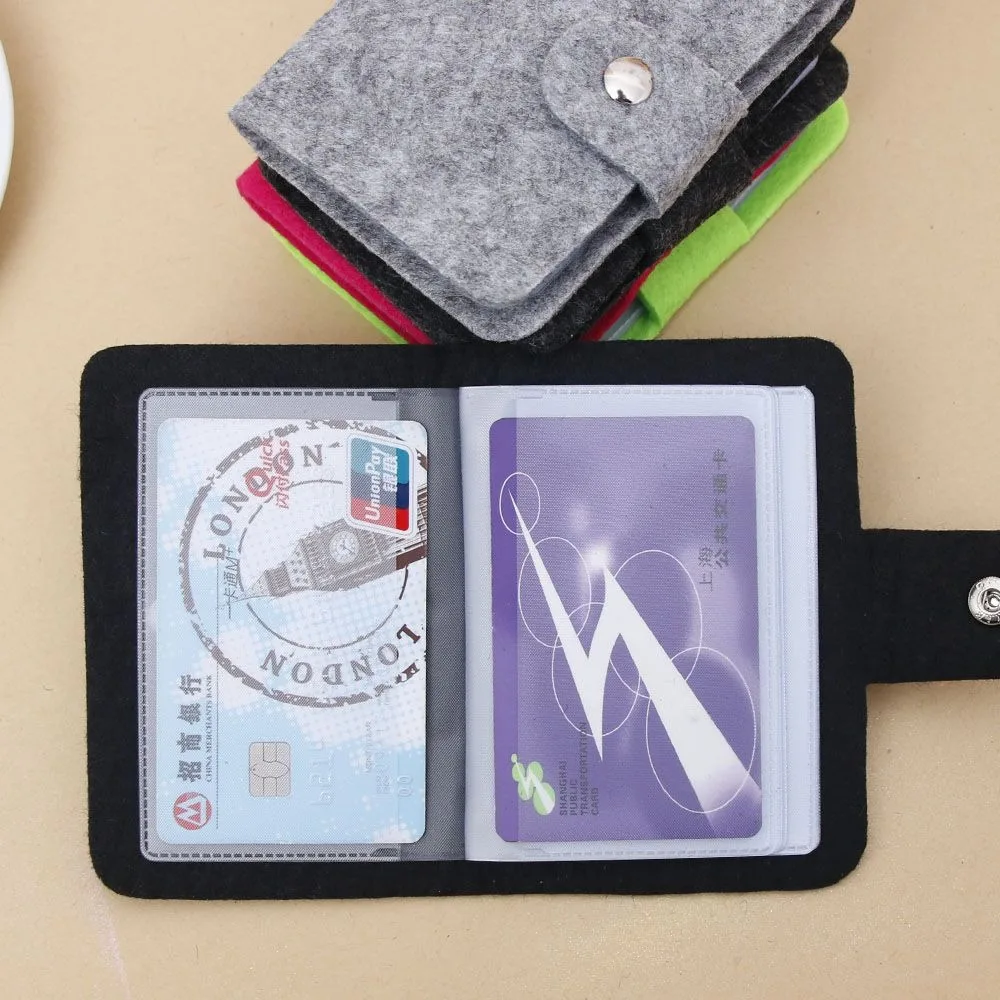 Женский модный чехол, держатель для ID, кредитных карт Сумка для карт из фетра для девочек, портативная, для ежедневного использования Особенности: Цвет: темно-серый, светильник, серый, черный, зеленый, розовый, красный Материал: войлочный кошелек для карт Размер: 7*11 см/2,75*4,33 "(прибл.) Емкость: вмещает 24 карты Посылка включает в себя: 1 шт., карман для карт