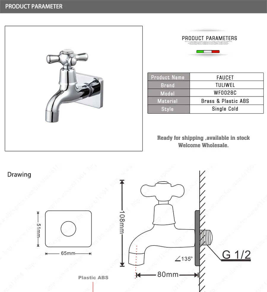 1. Wall Mounted Faucet Tap 2. Solid Brass Body 3. Chrome Finish 4. Cross Lever 5. G 1/2" Male thread to wall 6. Fit for Laundry ,Bathroom,Wetroom,Outdoor ,Garden