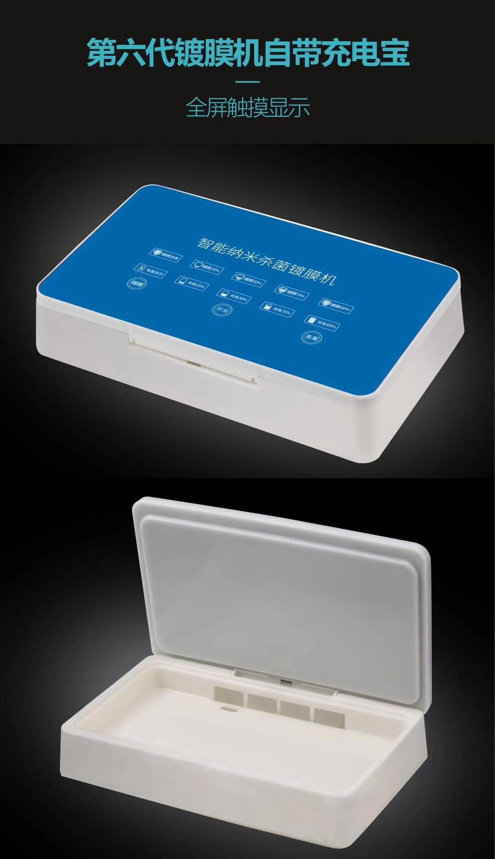 1. Многофункциональная машина для нанесения нанопокрытия 2. С большой ультрафиолетовой лампой с двух сторон, 360 градусов стерилизации. 3. С выходом USB, функция стерилизации доступна, whitecharge мобильный телефон. 4. С ароматической функцией, разнообразие духов опционально. 5. С голосовой функцией, прост в эксплуатации. 6. С большой емкостью, подходит для большинства 6,5 дюймов мобильный телефон, pad, часы и ювелирные изделия. 7. С умным размером и низким напряжением 5 В. Портативный andsafe. Вход ток 2A Мощность (диффузный) 2 Вт Максимальная мощность: 9 Вт Ультрафиолетовые волны: 253.7nm
