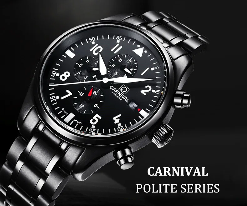 Карнавальные Роскошные брендовые черные вежливые модные часы мужские светящиеся автоматические военные механические наручные часы Relogio Masculino