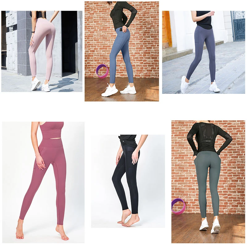 Женские штаны для йоги с боковыми карманами, Сексуальные Спортивные Леггинсы, эластичные, дышащие, черные, синие, розовые, для пробежек, тренировок, фитнеса, спортивные штаны для женщин