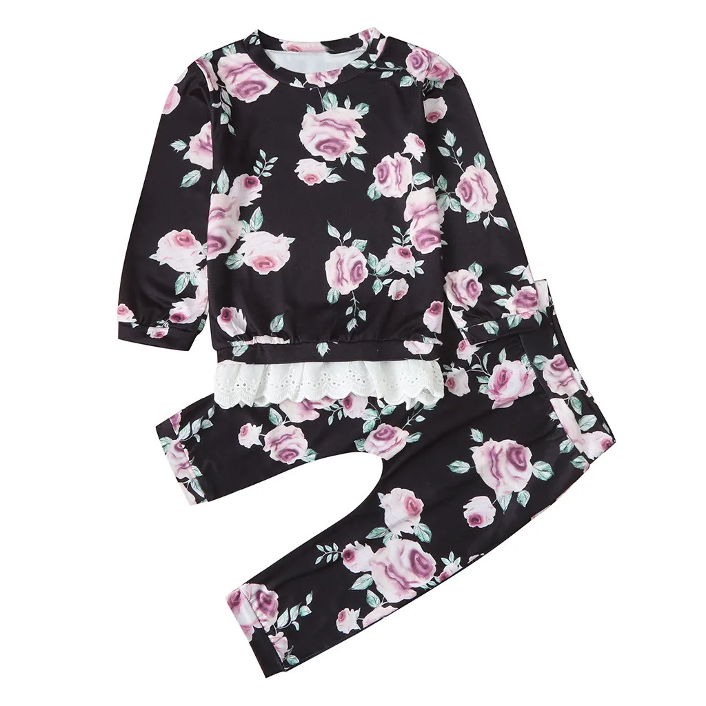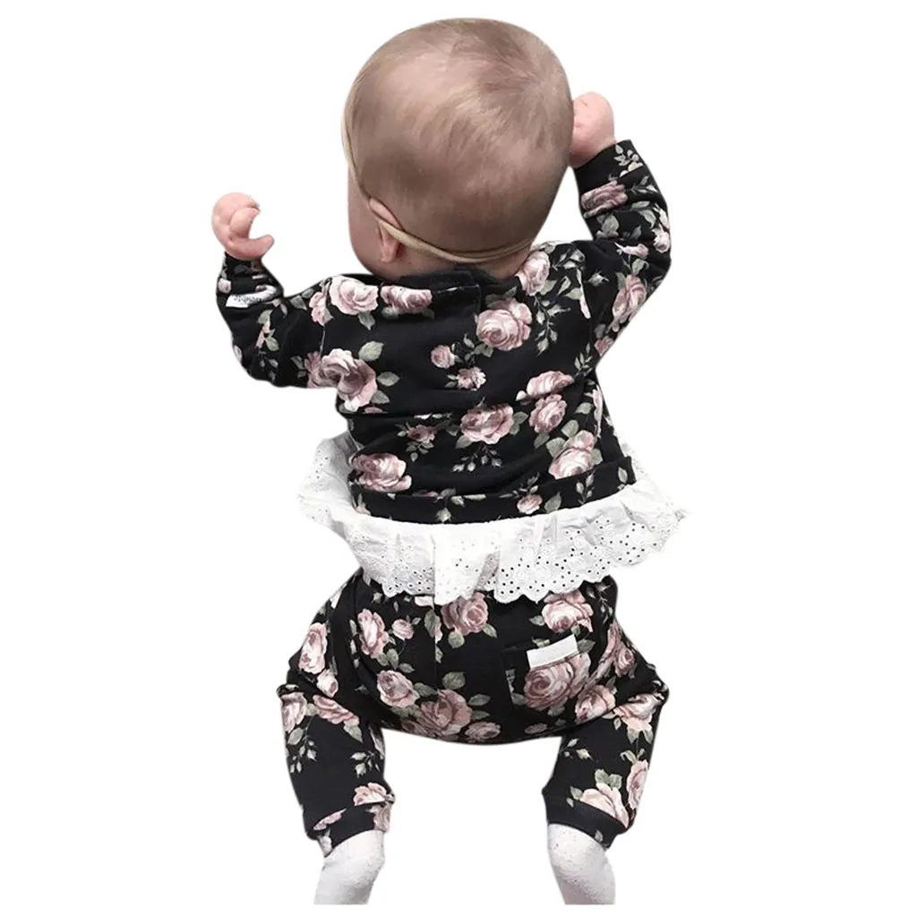 Рубашка с цветочным принтом для новорожденных мальчиков и девочек, кружевные топы, штаны, наряды