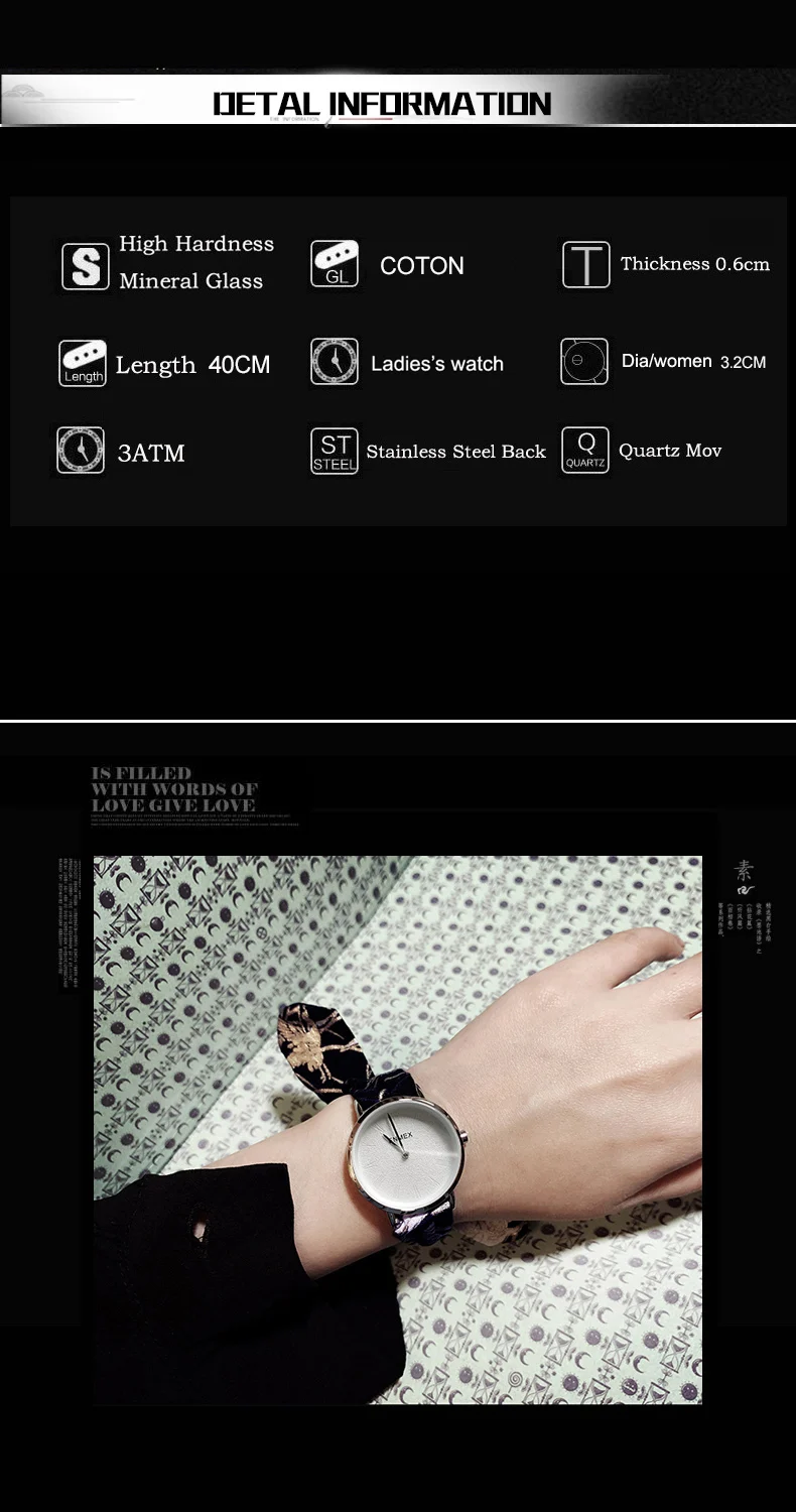 * Пожалуйста, посмотрите подробную информацию, как показано ниже * Чехол для часов: сплав с тонким покрытием (черное покрытие) * Ремешок для часов: ремешок из чистого хлопка * Водонепроницаемость 30 метров отвечает потребностям повседневной жизни • Общая длина: 40 см Диаметр 3,2 см Толщина 0,6 см * Для молодых людей предпочтений креативного дизайна/Чистый хлопок ремешок здоровья и ультра-тонкий корпус часов только 0,5 см eadge. Топ тенденции. В простом стиле