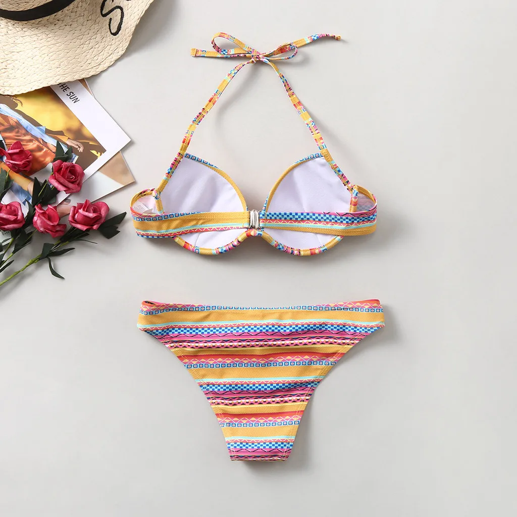 Женский комплект нижнего белья в полоску с пуш-ап, удлиненный пляжный костюм в народном стиле, 2019