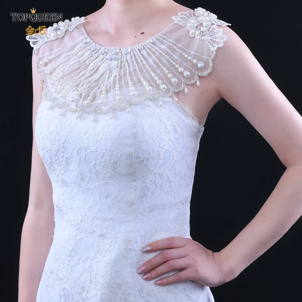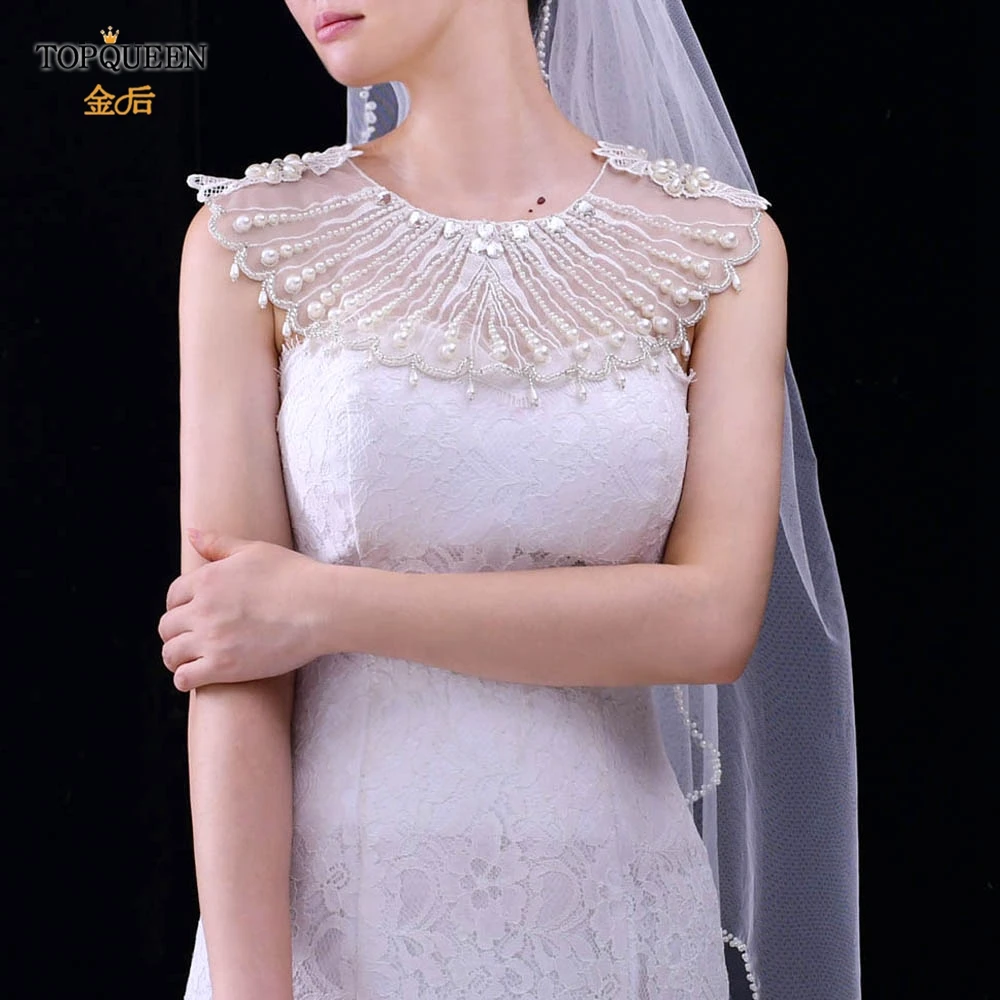 TOPQUEEN SG08 Свадебные сектор шаль к требованиям заказчика; Сверкающие; Бисером свадебное вокруг лодыжки и бахромой Великолепная Свадебная накидка в африканском стиле на высоком каблуке специальное мероприятие, с отложным воротником