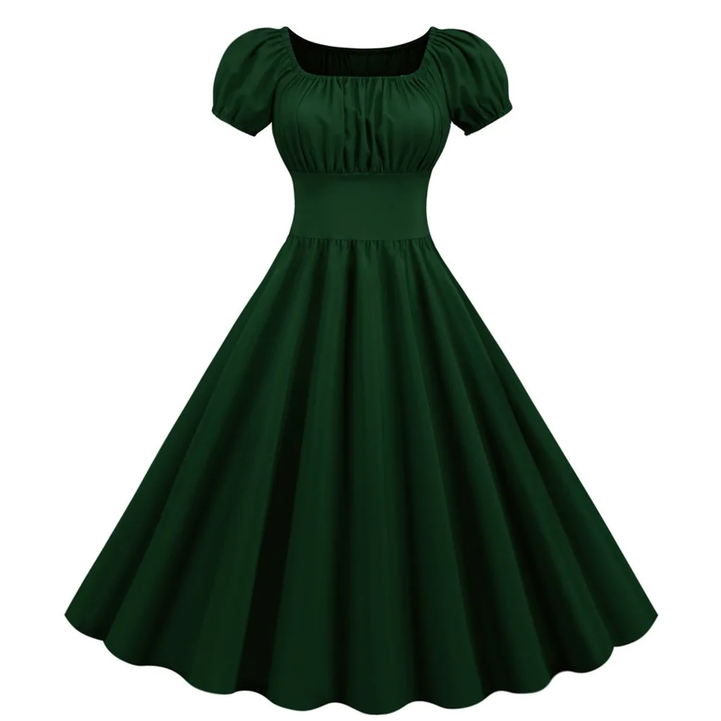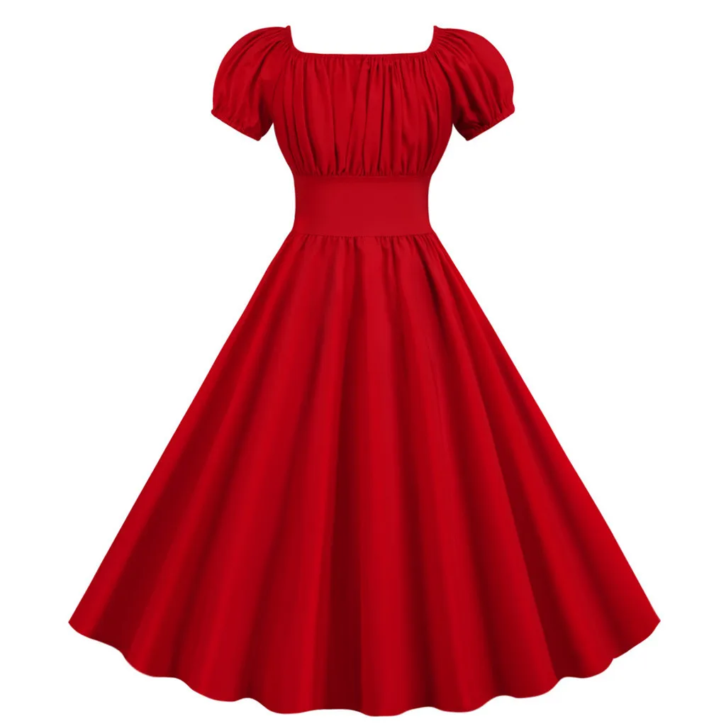 Женское летнее платье с квадратным вырезом и коротким рукавом, Ретро стиль, 50 s 60 s, винтажные вечерние платья