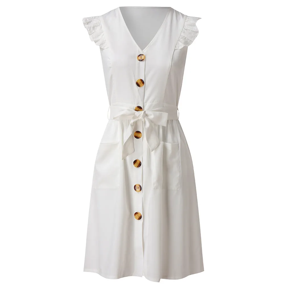 Женское Повседневное платье макси с оборками, v-образным вырезом, пуговицами и карманами
