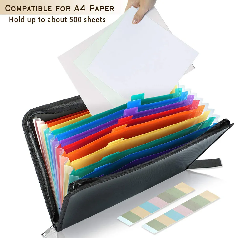 Расширяющаяся папка для файлов A4 огнестойкая водонепроницаемая сумка-Органайзер для документов переносная папка-гармошка с 12 разноцветными карманами