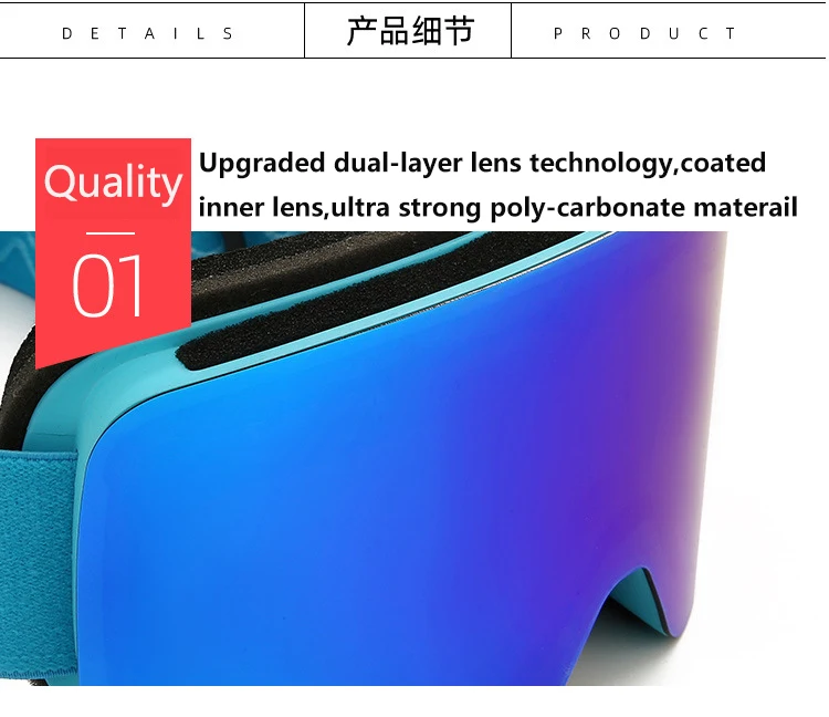 Информация об изделии Высококачественные профессиональные лыжные очки для сноуборда! Характеристики Цвета оправы: темно-синий Тип очков: профессиональные лыжные очки Оптические характеристики линз: защита UV400, зеркальное покрытие Ширина линзы: 180 мм Высота линз: 92 мм Вес: около 145 г Материал оправы: ТПУ Материал линз: поликарбонат При использовании рамы из ТПУ материал обладает отличной гибкостью, поэтому не вызовет травм глаз при воздействии зеркальной поверхности. Использование поликарбоната с двойным литьем под давлением для линз, устойчивых к царапинам, ударопрочности, ультрафиолетовой резки, противотуманных и других свойств Посылка входит 1 лыжные очки 1 * сумка для очков 1 * Лыжные маски в подарок Примечание Пожалуйста, снимите защитную пленку внутри и снаружи при использовании.