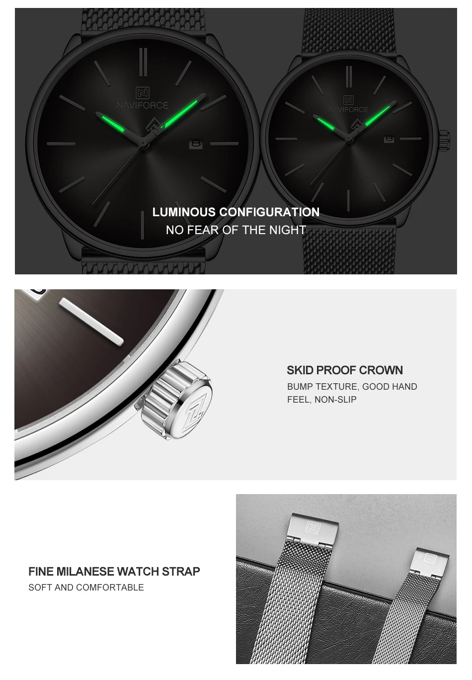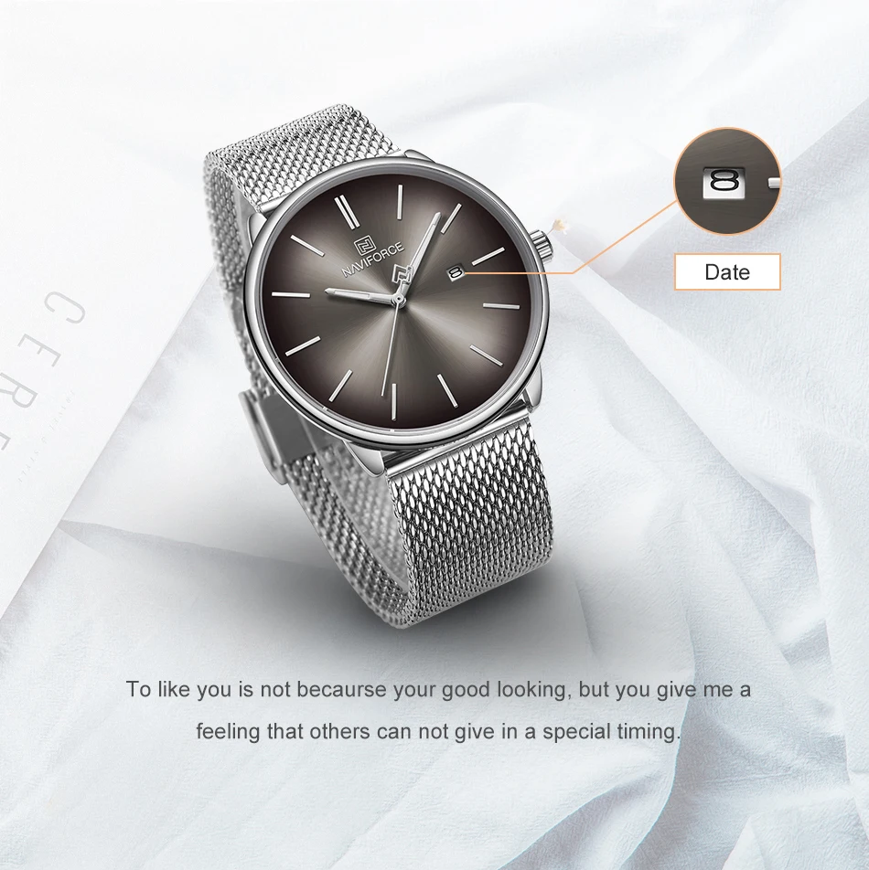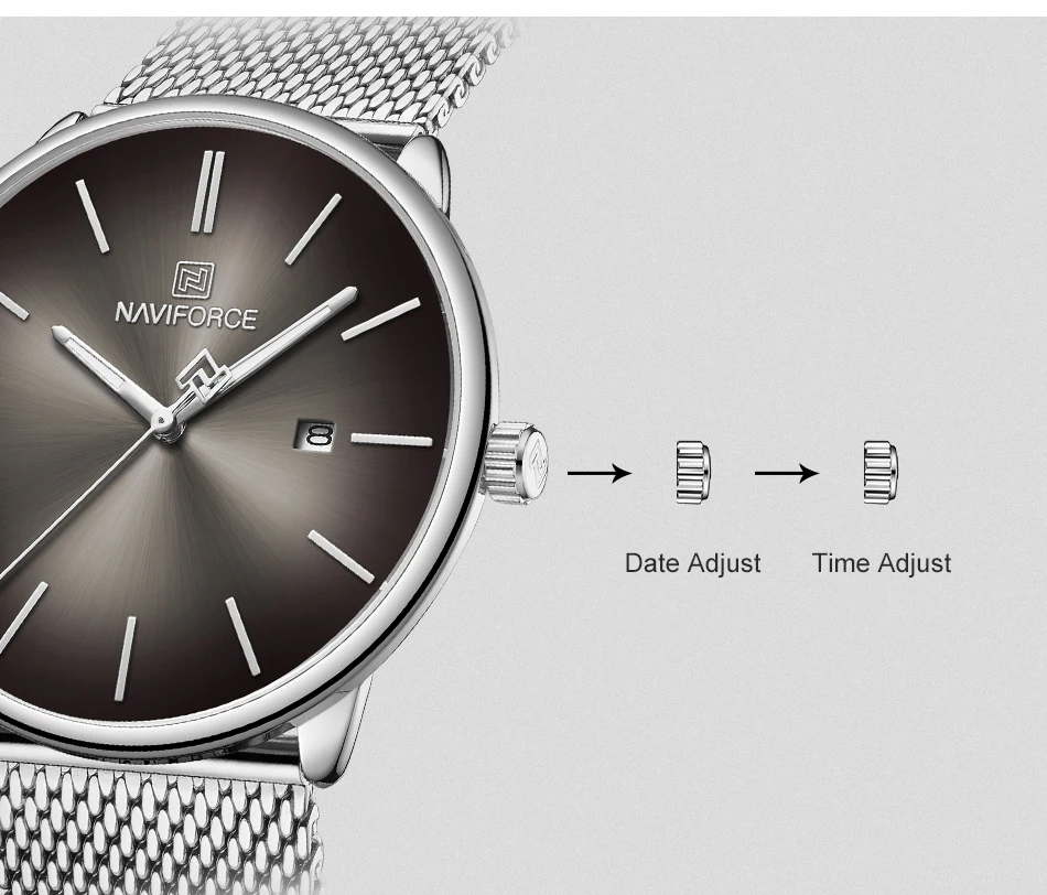 NAVIFORCE Топ люксовый бренд часы Мужские кварцевые часы из нержавеющей стали водонепроницаемые деловые часы наручные часы Дата Relogio Masculino 1. Роскошные новые кварцевые часы NAVIFORCE 2. Модные повседневные мужские часы 3. Отличное качество изготовления и элегантный стиль