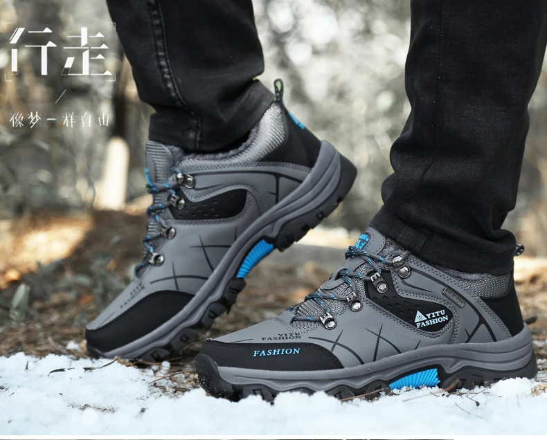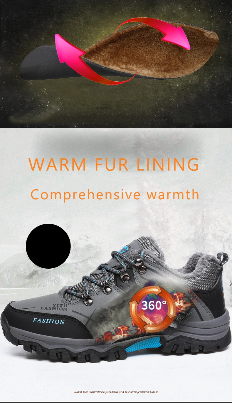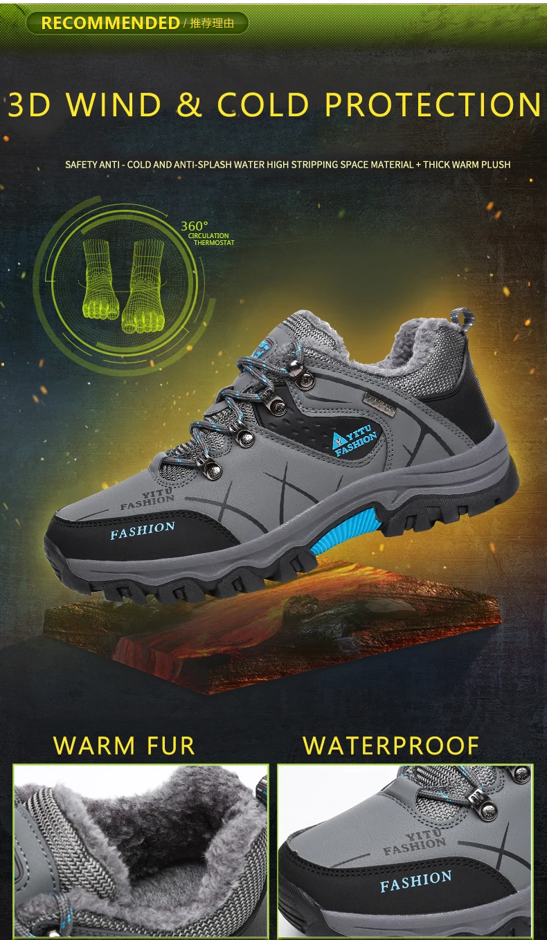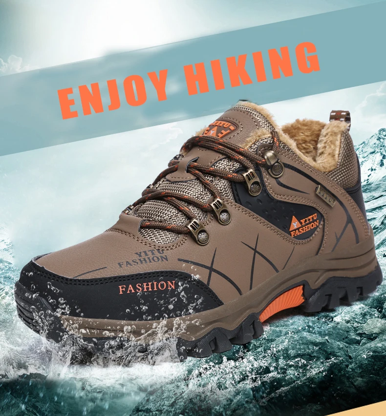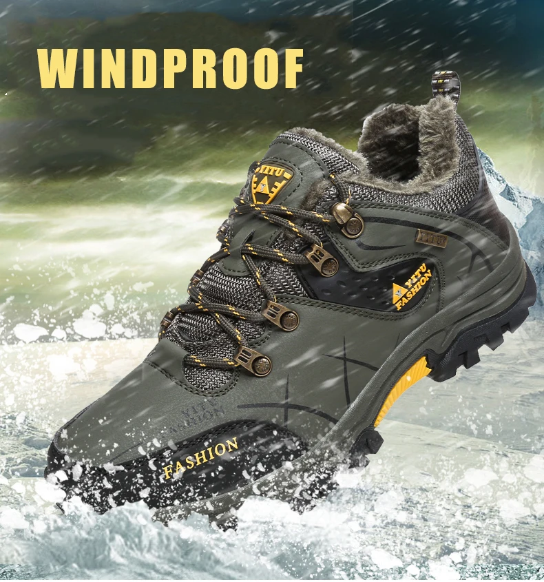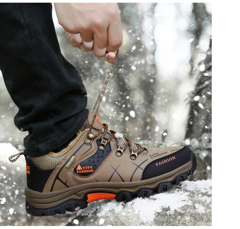 Мужская обувь для альпинизма; Зимние треккинговые кроссовки с густым мехом для мужчин; Треккинговые ботинки; Большие размеры; Водонепроницаемая обувь; Тактическая обувь для мужчин