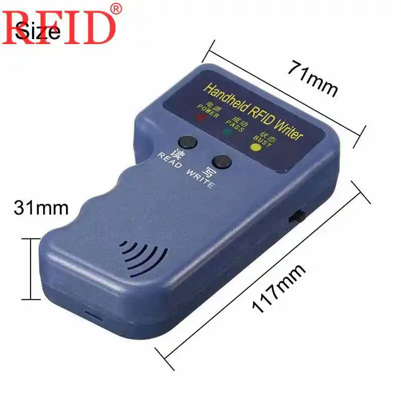 Параметр Чтение: EM / TK (EM4100 TK4100 и т. Д.) карты или ключи Запись: EM4305 CET5557 T5577 5200 EM4205 и т. Д. Карты или ключи Встроенный: индивидуальные светодиодные фонари и звуковой индикатор, приемопередатчик антенна Источник питания: 3 в (2 батареи AAA) (батарейки в комплект не входят) Время: чтение/запись> 20000 раз Размер: (Д * Ш * В): 115x70x30 мм Вес: 85 г Поддержка тег Можно копировать только 125 кГц RFID карты, совместимые с T5577, CET5200, EM4305 и EN4305. Как использовать: Шаги по эксплуатации, как показано ниже: Шаг 1 включится, светодиод питания должен мигать на одну секунду. Шаг 2 Положите карту EM4100, что должно быть скопировано в области чтения. Шаг 3 нажмите кнопку «чтение», если светодиод «Чтение» «ок» должен мигать и звучать звуковой сигнал. Шаг 4. Вставьте карту EM4305, нажмите кнопку «написать» и удерживайте нажатой, примерно на одну секунду, если звуковой сигнал означает, что копия преуспела. Шаг 5 если вы хотите написать больше карт с тем же идентификатором, повторите шаг 4 Шаг 6 выключен для экономии энергии.