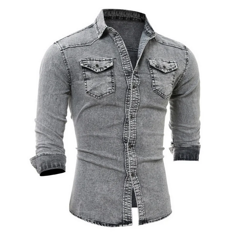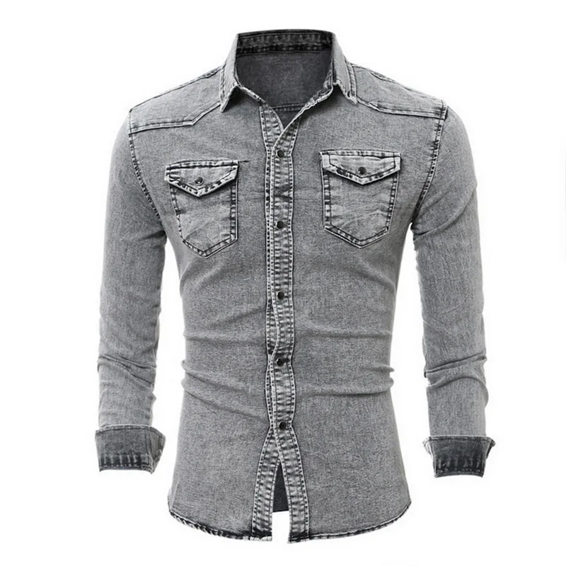Мужская хлопковая джинсовая рубашка JODIMITTY, модная Осенняя приталенная ковбойская рубашка с длинным рукавом, стильные облегающие топы, Азиатский Размер 3XL