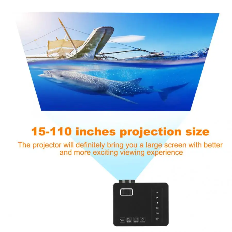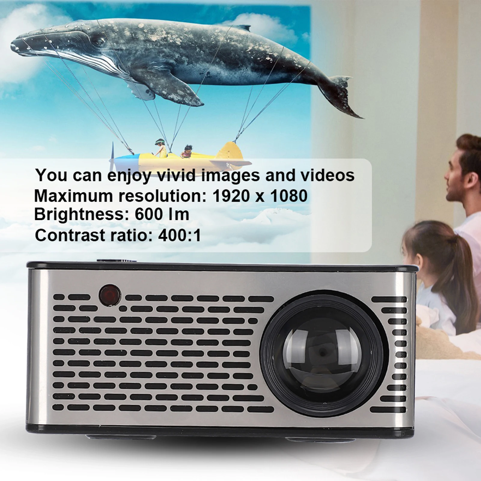 1. Вы можете наслаждаться яркими изображениями и видео с максимальным разрешением 1920x1080 и яркостью 600 лм, а также коэффициентом контрастности 400:1.Спецификация: