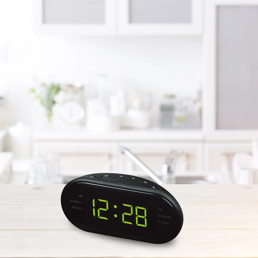 Светодиодный Будильник с частотным диапазоном 64,0 ~ 108,0 МГц FM и частотным диапазоном 522 ~ 1620 кГц AM, у которого есть функция сохранения каналов, функция ручного поиска каналов, функция автоматического поиска каналов, удобно для вас, чтобы управлять и найти радио-канал, который вам нравится.