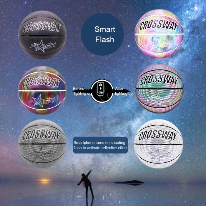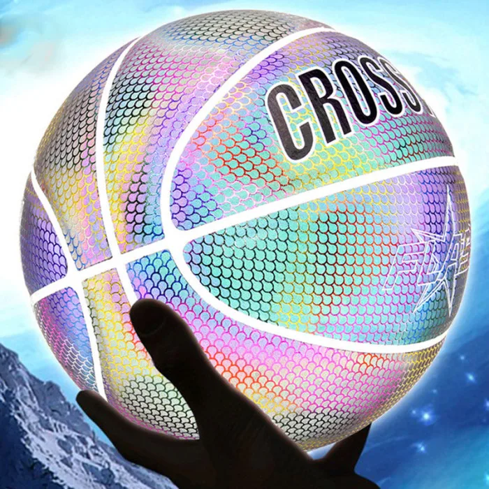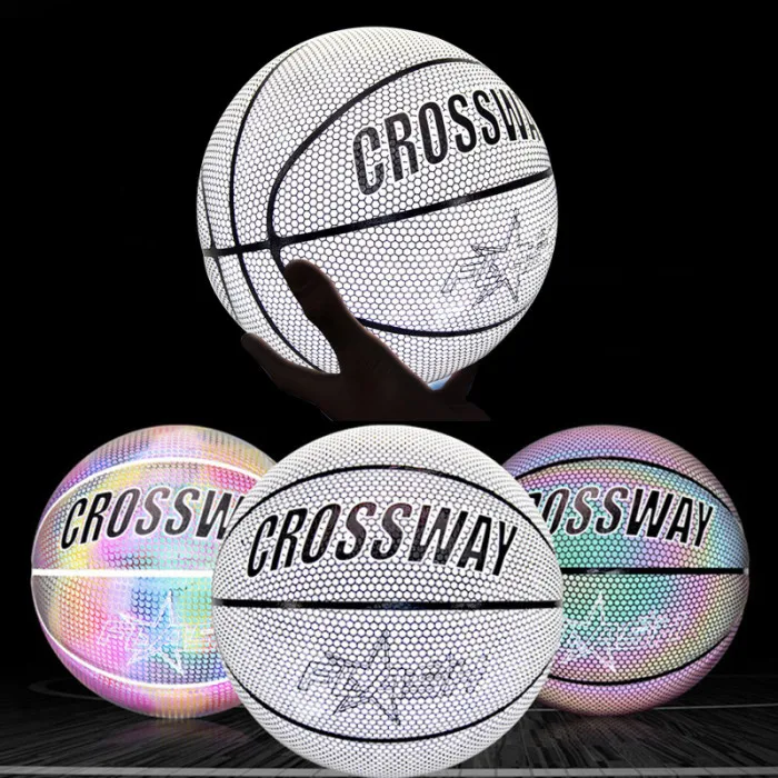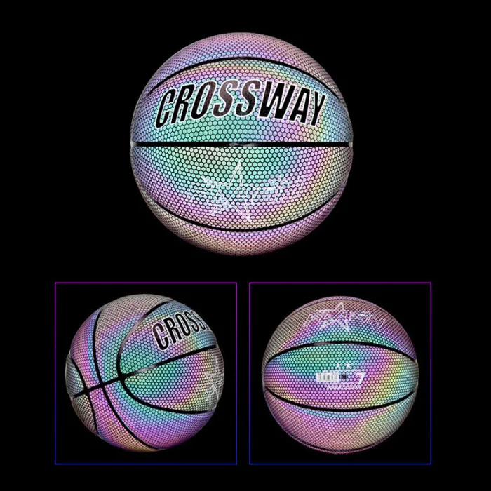 Широкое применение-Этот уникальный голографический светоотражающий Баскетбол имеет хорошую производительность во время тренировок в помещении и на открытом воздухе в течение дня или ночи, и используется для синтетических кортов, бетонных полов, дощатых полов и т. Д.