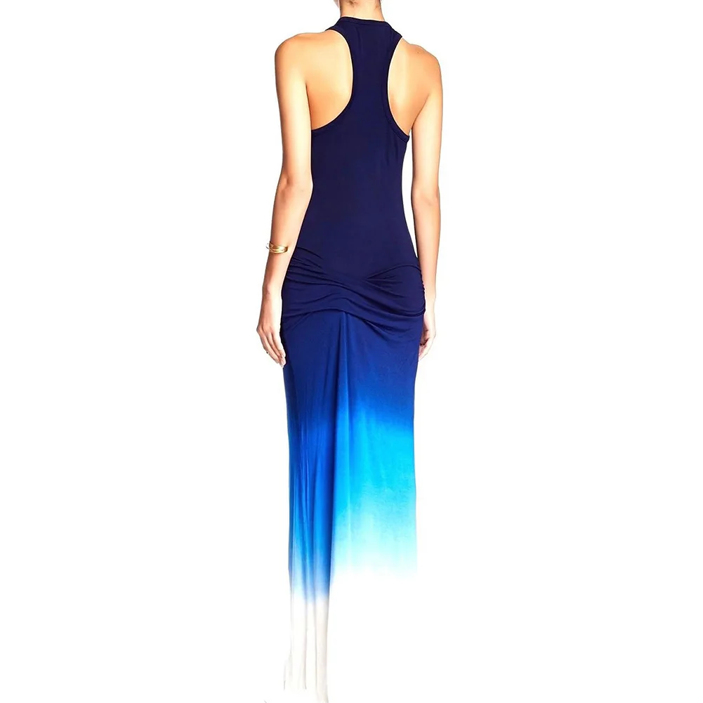 Большие размеры, модные женские платья, градиентные, сексуальные, с открытой спиной, без рукавов, с круглым вырезом, летние, пляжные, вечерние, повседневные, женские макси платья