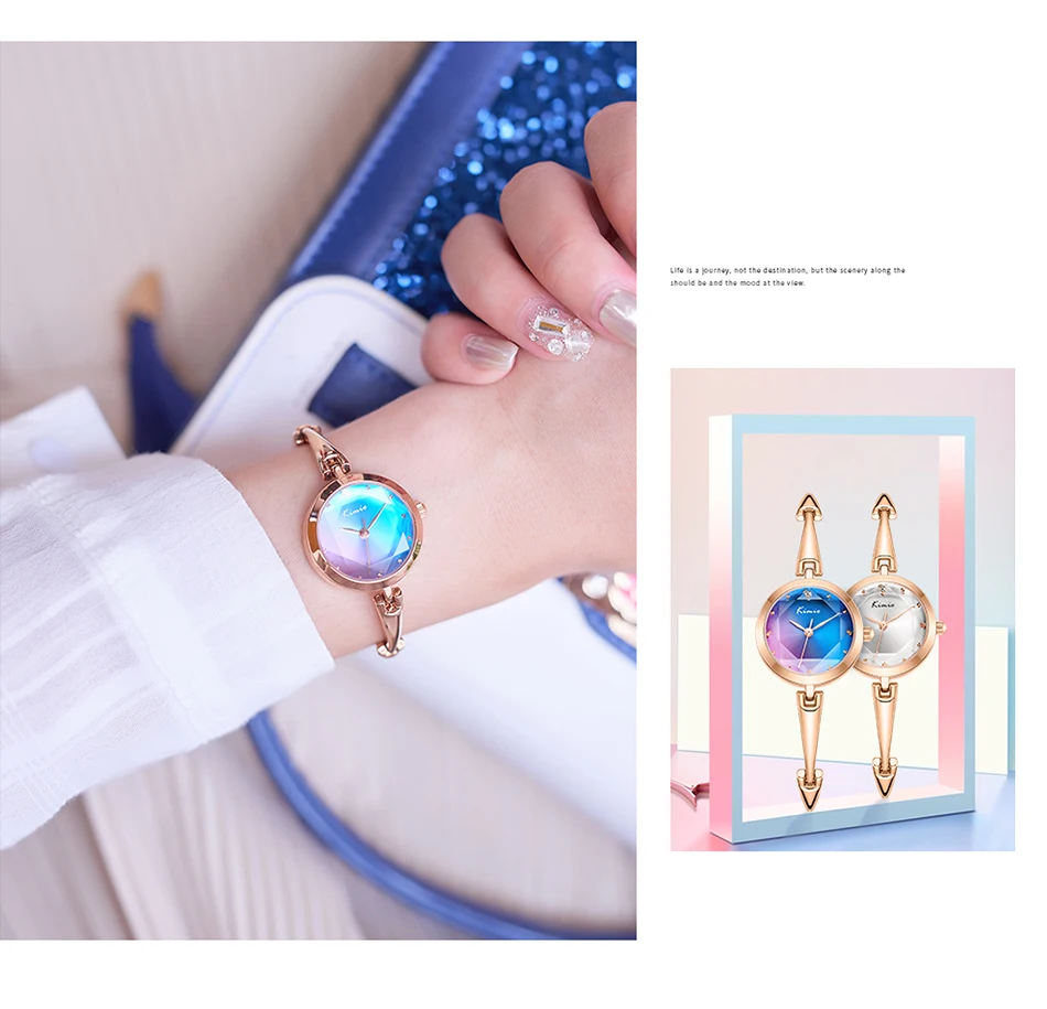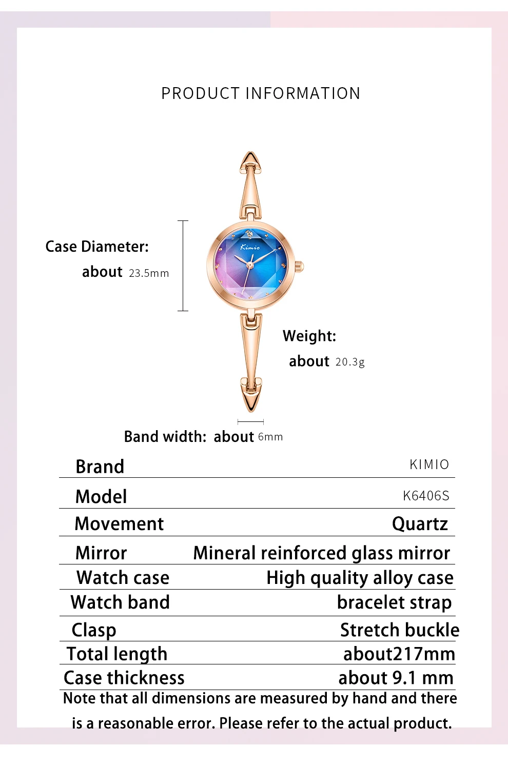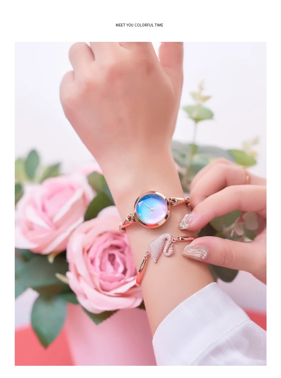 Бренд Kimio, ЖЕНСКИЕ НАРЯДНЫЕ часы, браслет из нержавеющей стали, часы, градиент цвета радуги, циферблат, Дамские Кварцевые часы Zegarek Damski.