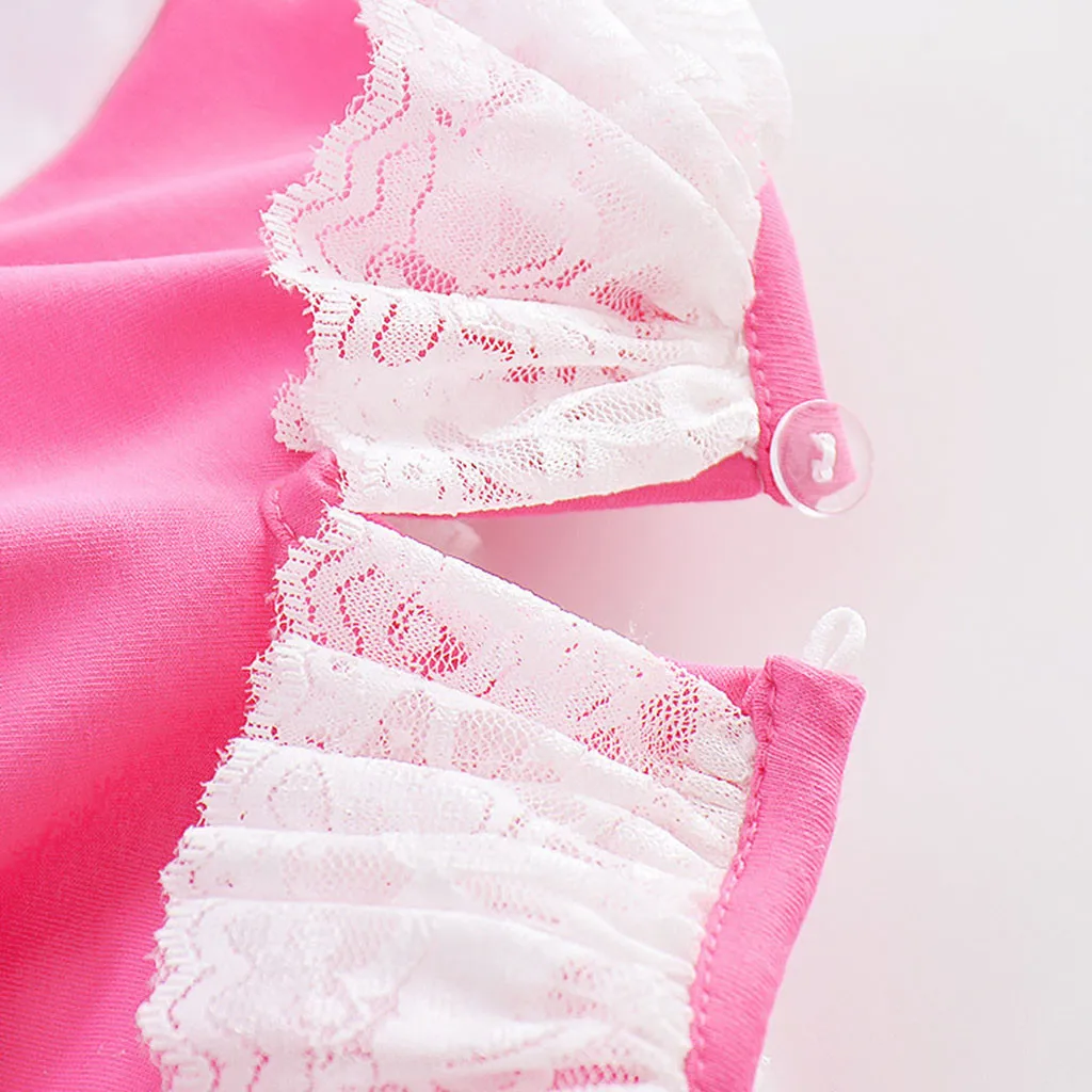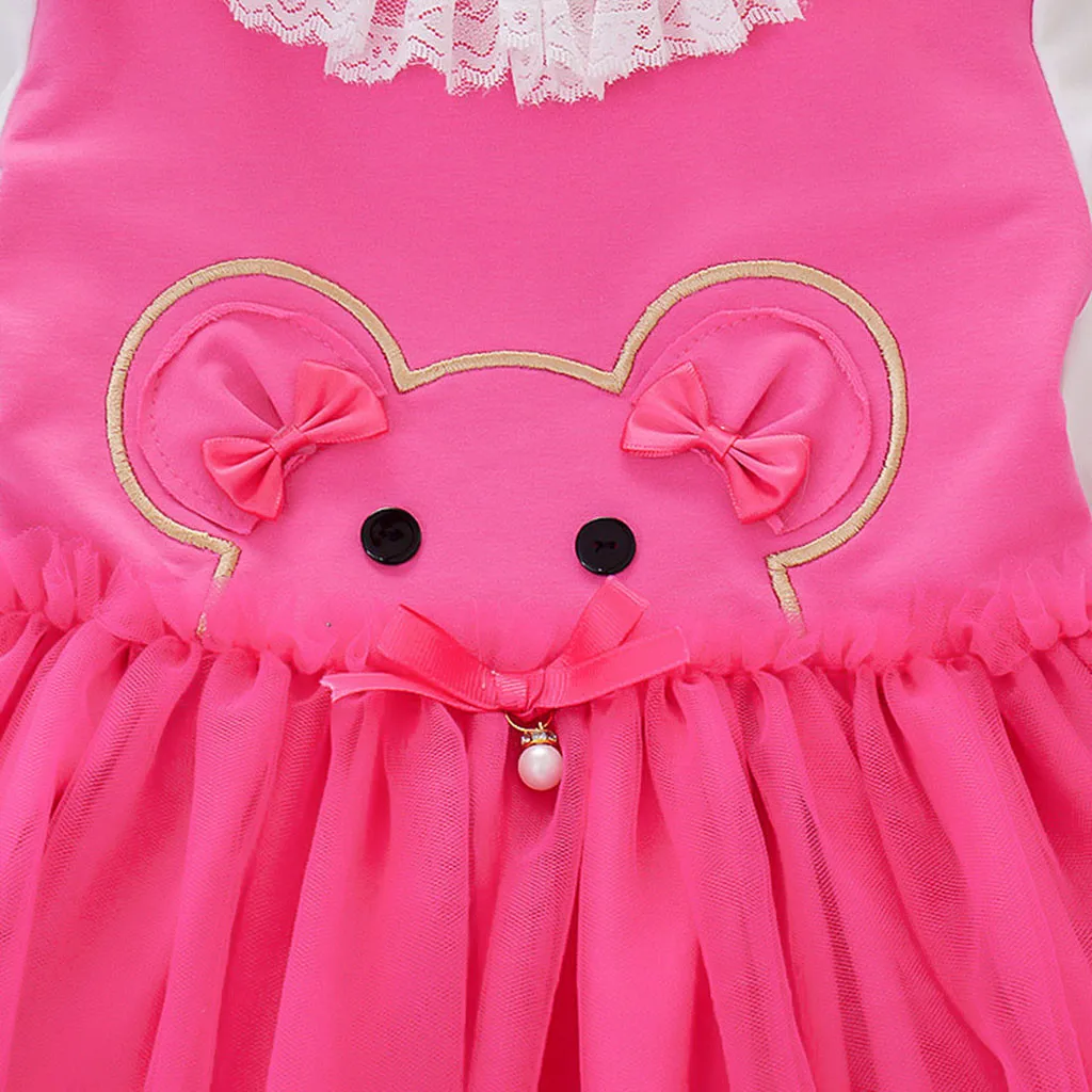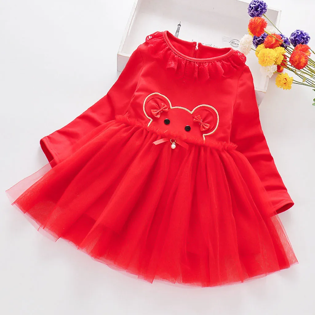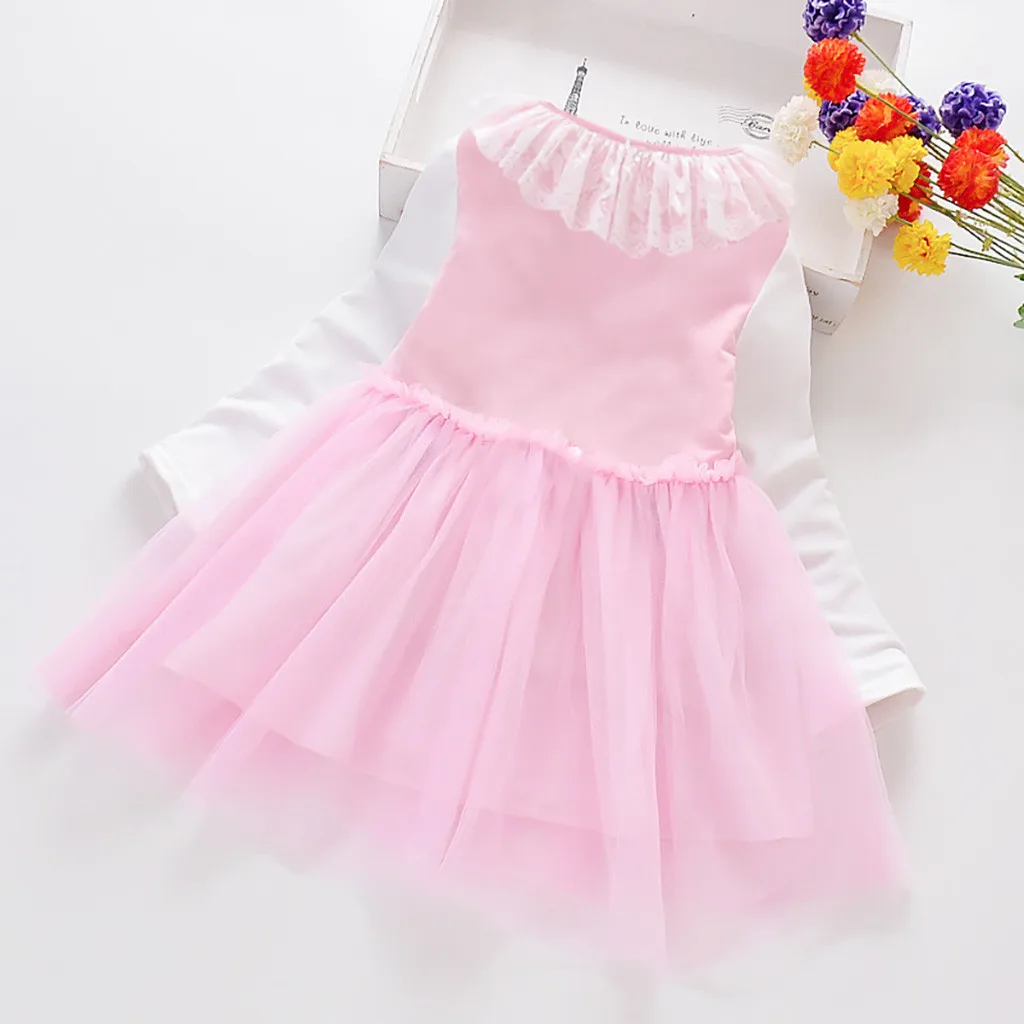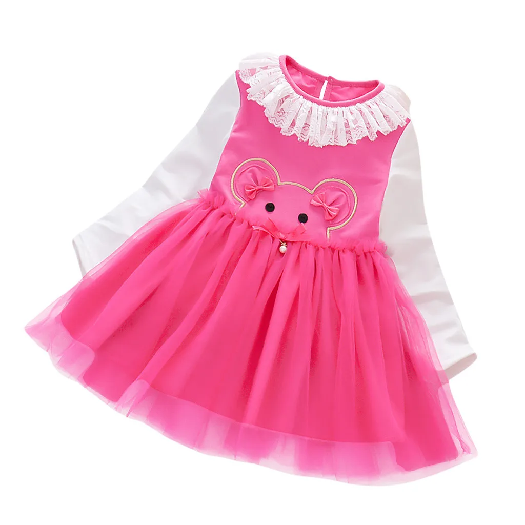 Платье принцессы для девочек однотонное кружевное платье с длинными рукавами и круглым воротником с героями мультфильмов