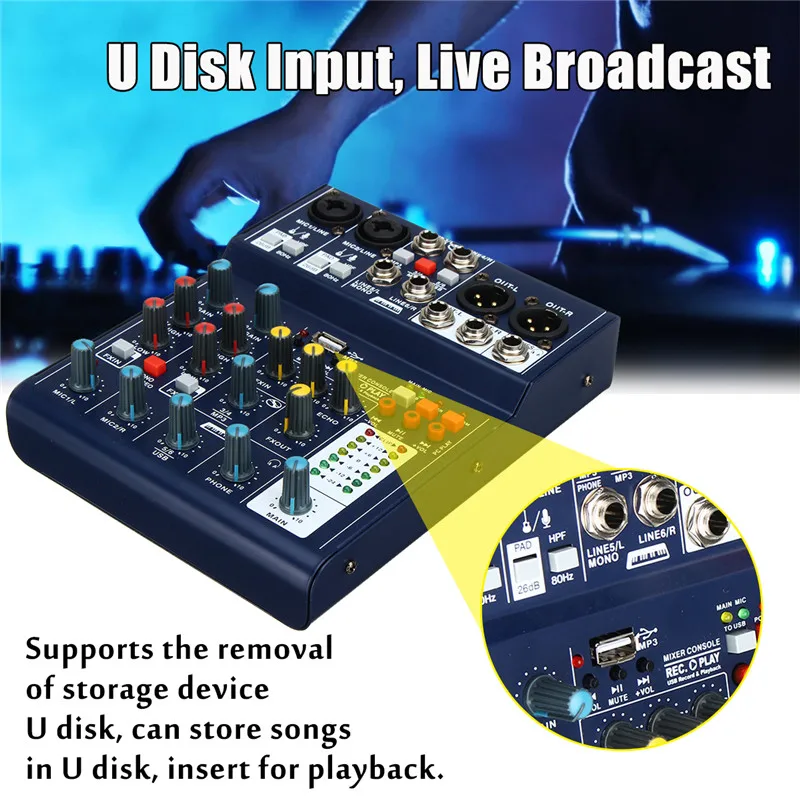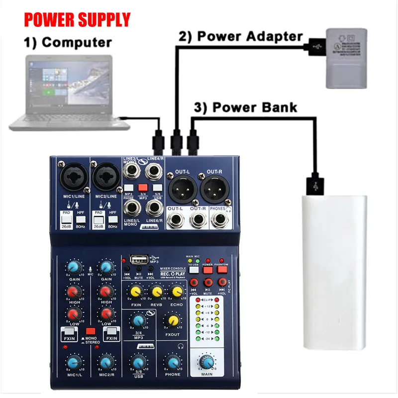 1. Название: Маленький размер 6-канальный USB Портативный смеситель Live Studio аудио микшерный пульт