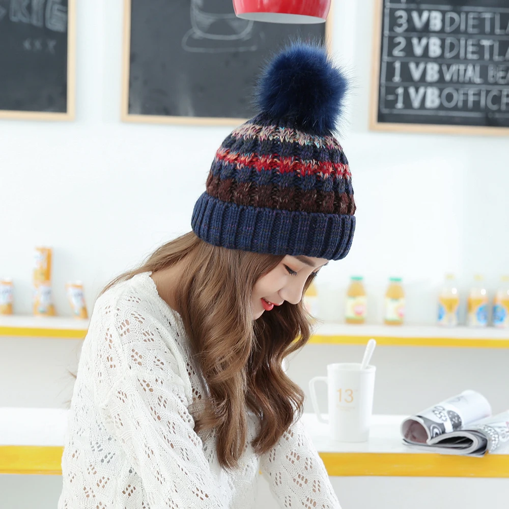 Прочный вязаный узор с закручивающимся узором, симпатичный помпон с украшением сверху.