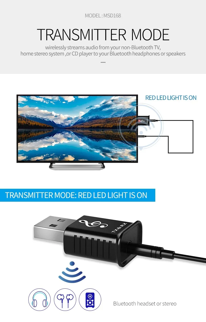 Bluetooth 5,0 аудио передатчик приемник USB адаптер для ТВ ПК автомобиля AUX динамик