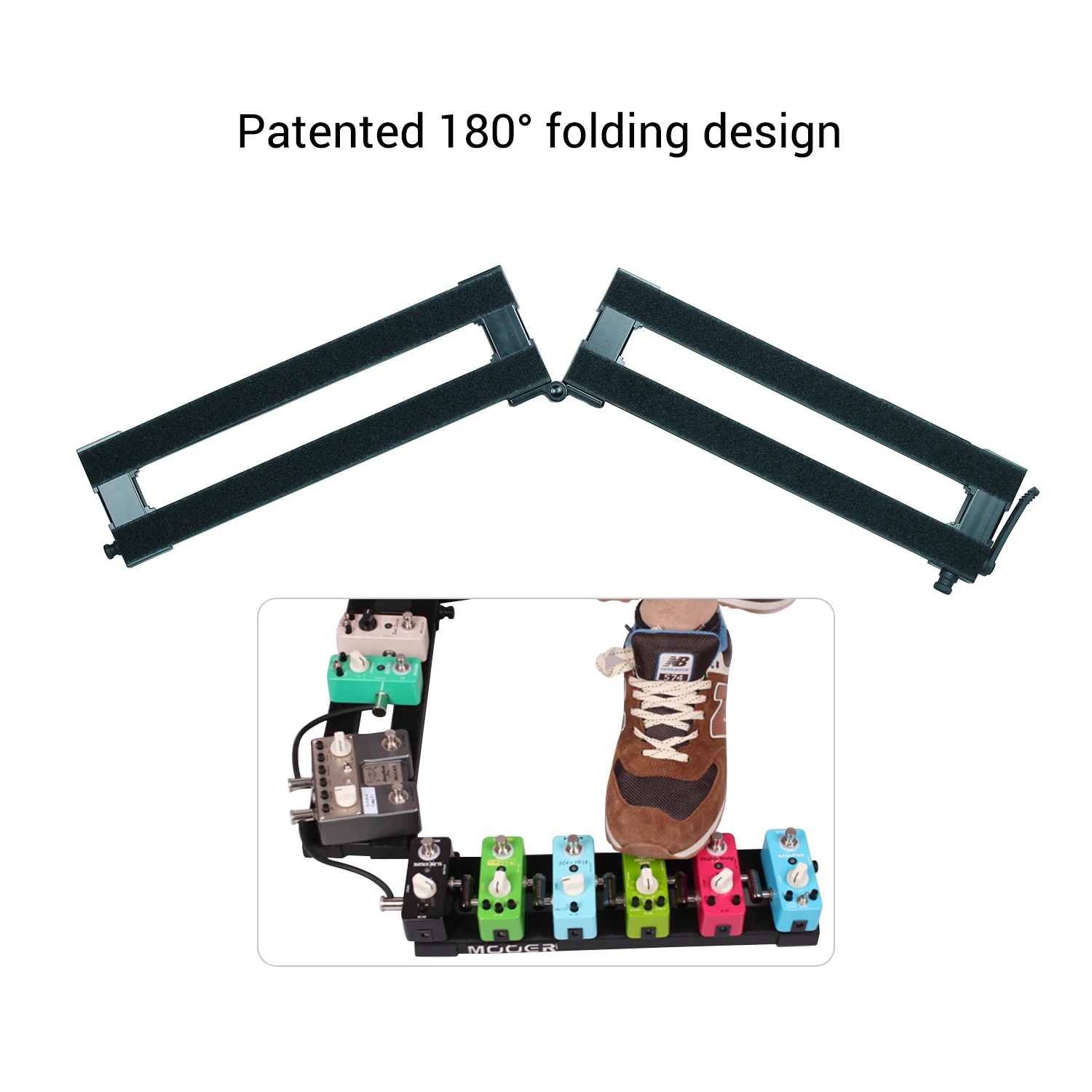 Запатентованная складная конструкция на 180 ° делает педальную доску более компактной и удобной в использовании и переноске.