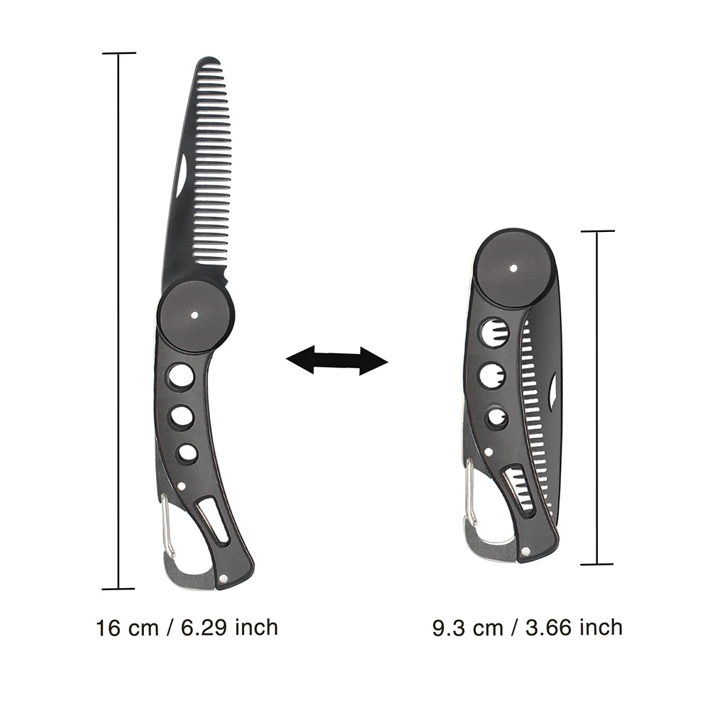 -Складная конструкция, более удобна в переноске; Пряжка крюк; круглые зубцы гребня не прилипают волосы; Нет повреждения кожи.