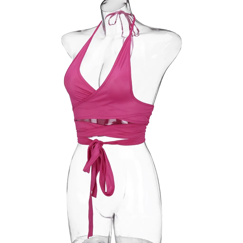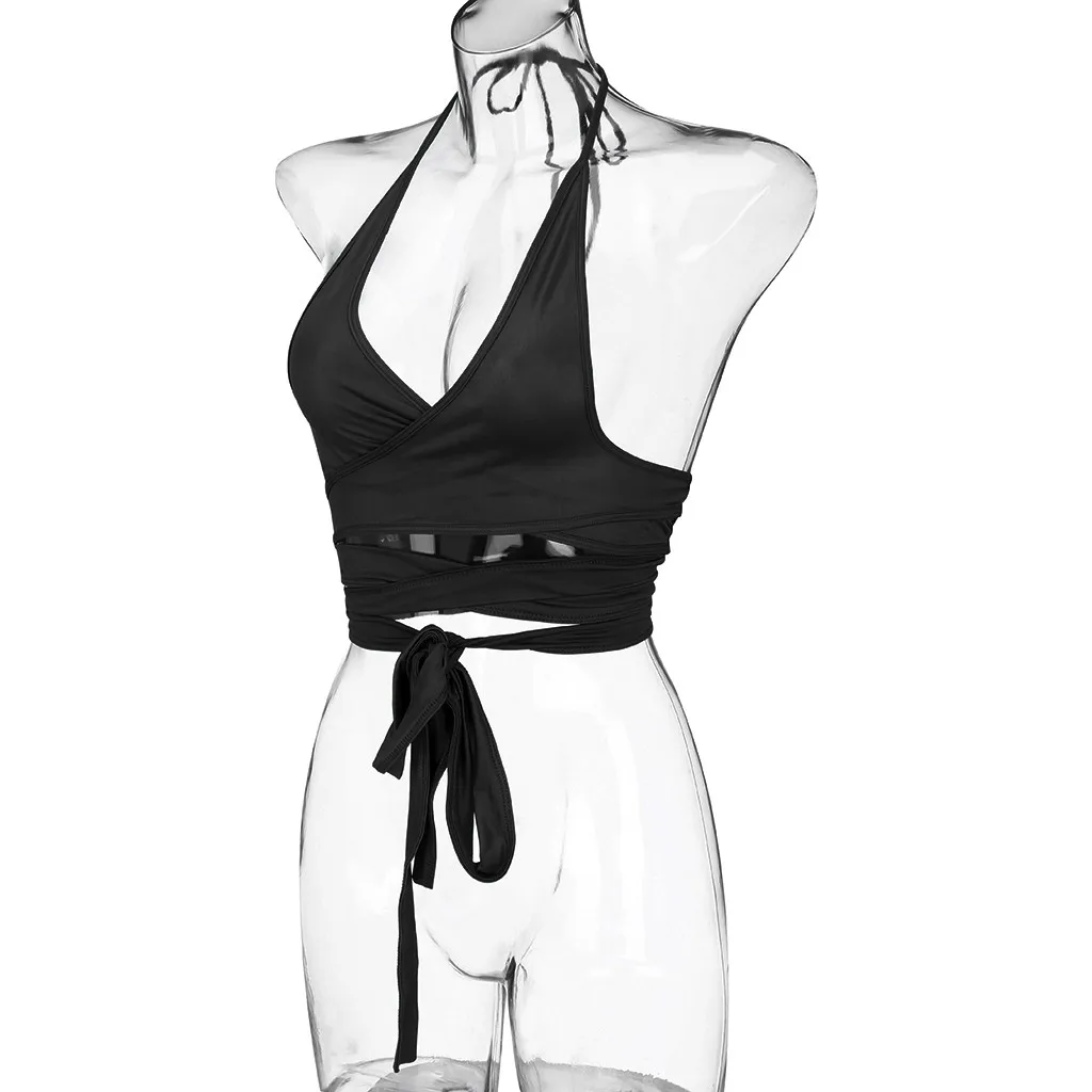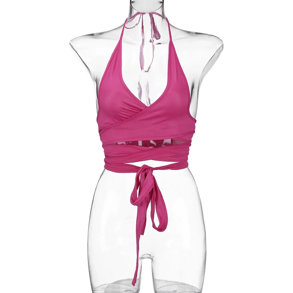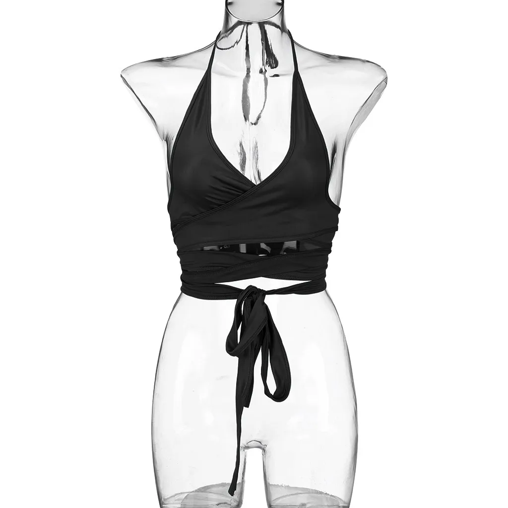 Сексуальный бикини Топ, женский купальный костюм 2020, однотонный, с перекрестными ремешками, бандажный купальник, пляжная одежда, Топ для плавания, купальник с бюстгальтером Maillot De Bain