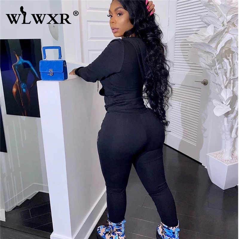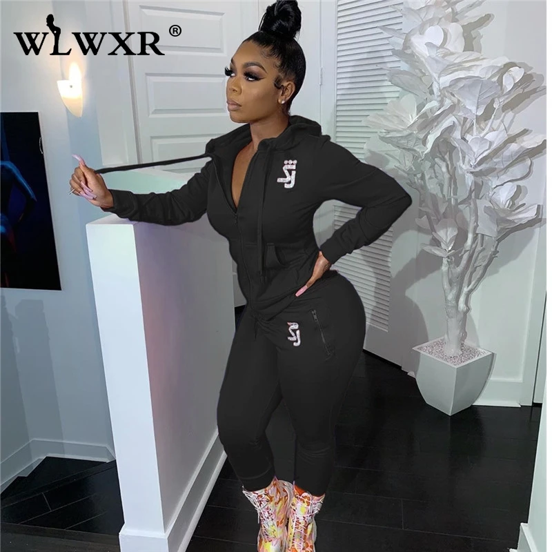 WLWXR уличная одежда, комплект из двух предметов, женский спортивный костюм, верхняя одежда на молнии с капюшоном и облегающие спортивные штаны, женские комплекты