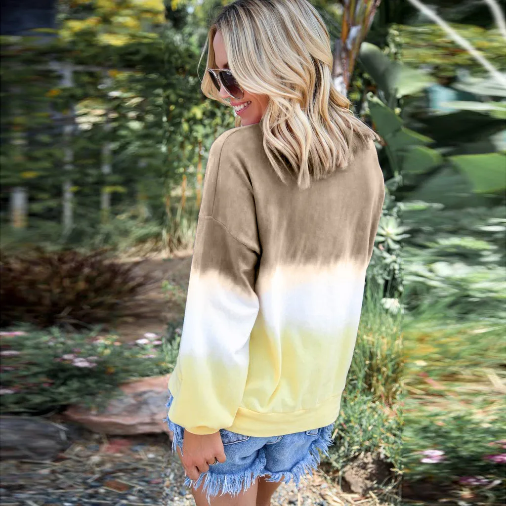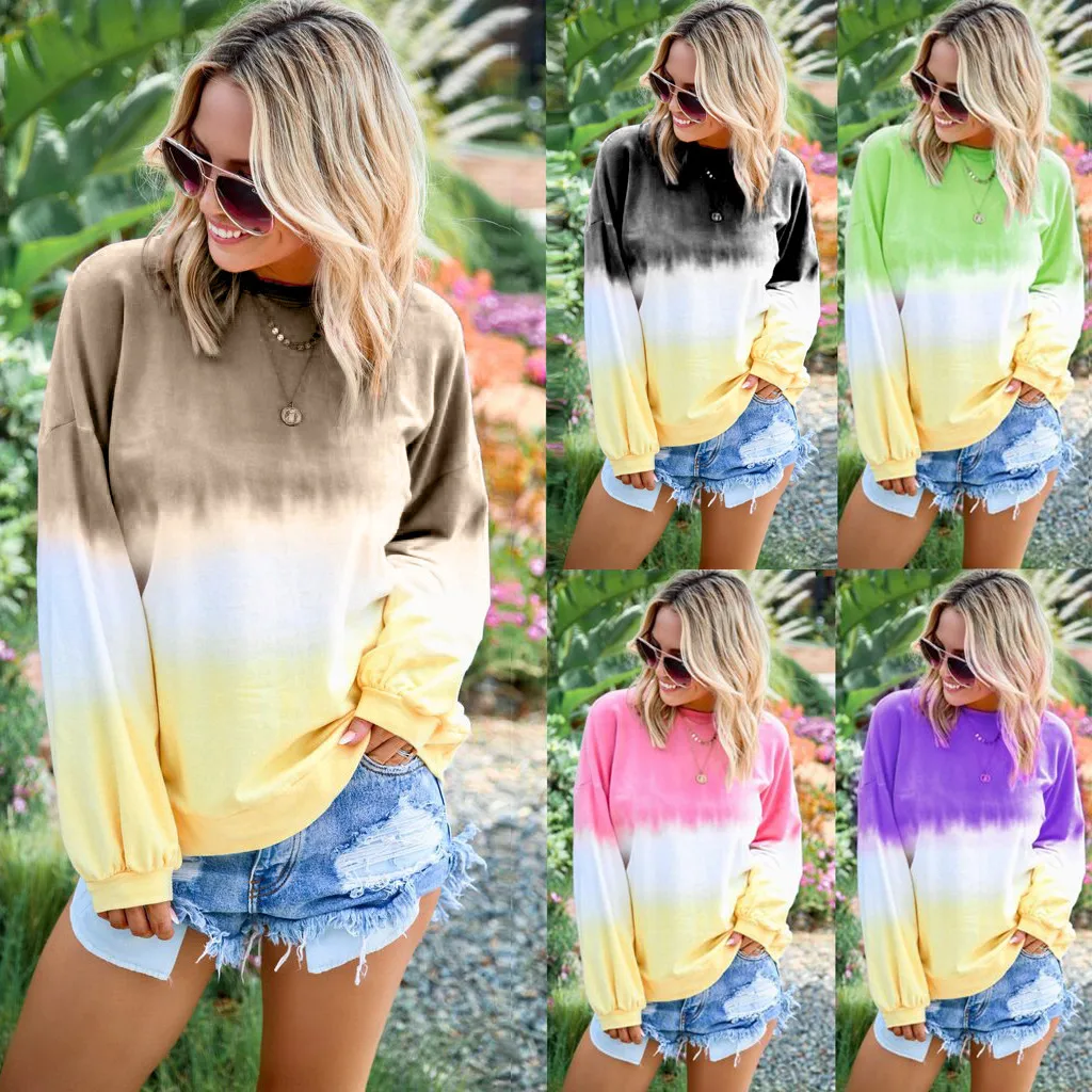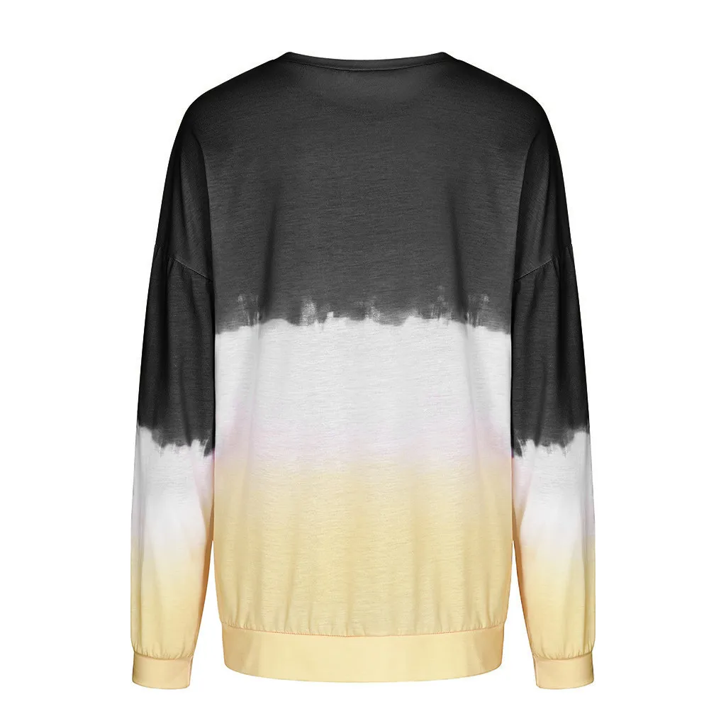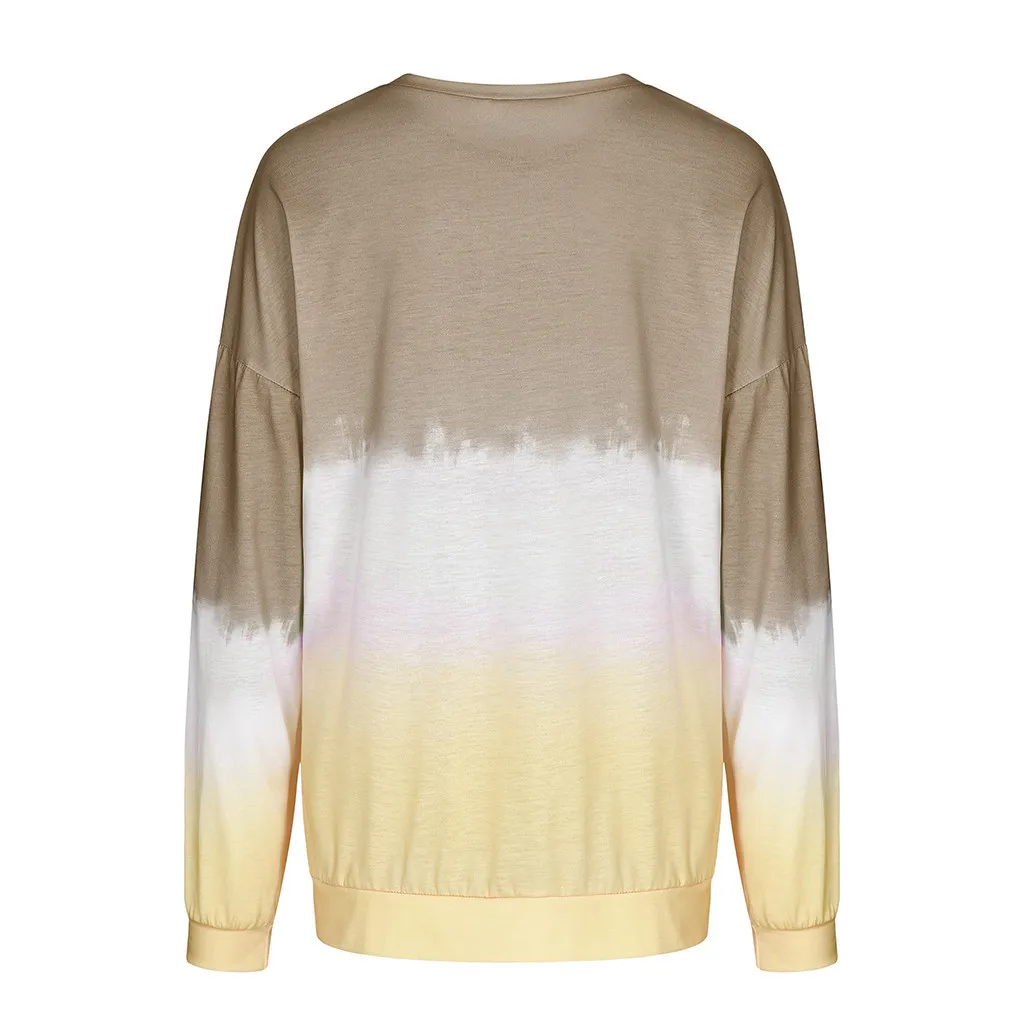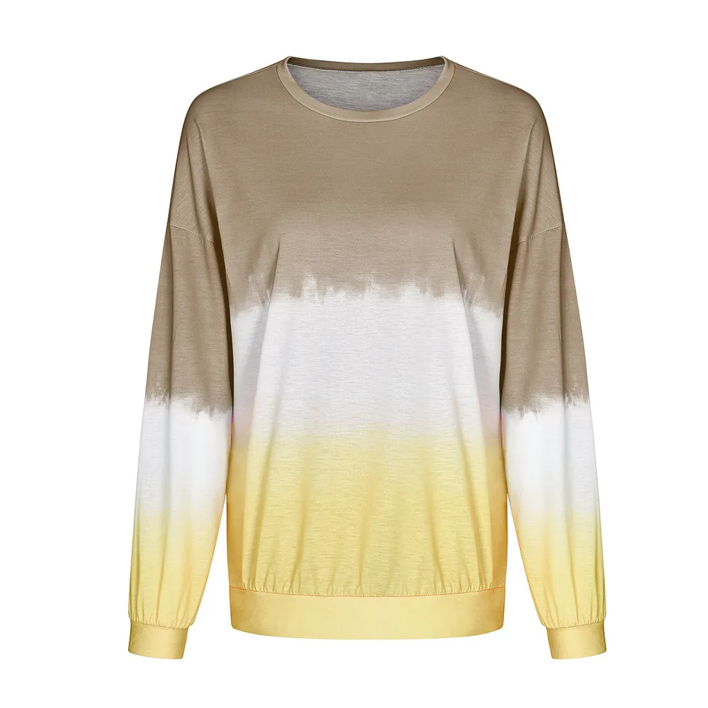 Женский Повседневный пуловер с круглым вырезом и градиентом контрастного цвета с длинным рукавом