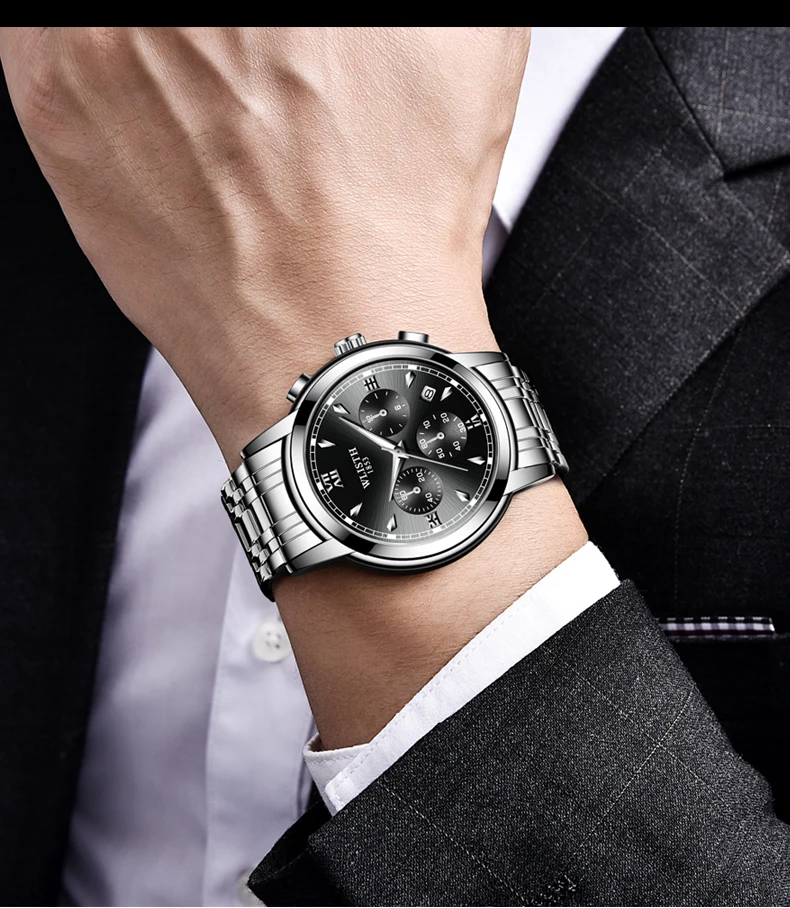 Тип часового механизма: Кварц Тип короны: спиральная Корона Стиль пряжки: Двойная застежка-бабочка Форма циферблата: круглый Водонепроницаемость: 30 м Материал ремешка: стальной ремешок Материал пряжки: нержавеющая сталь Тип подошвы: обычная Вес: 84 г Характеристики упаковки