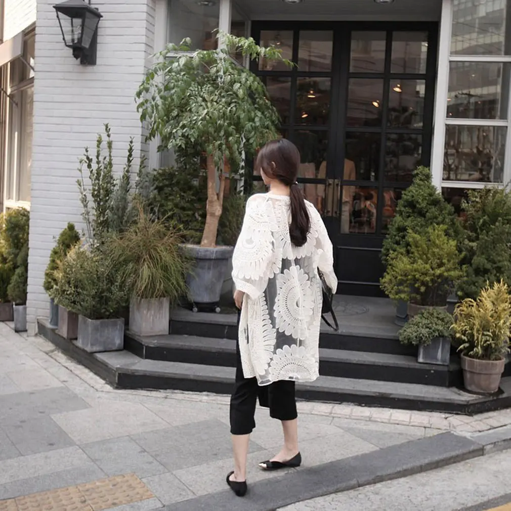 Стильный вязаный ажурный пляжный купальник-бикини, закрывающие штаны.