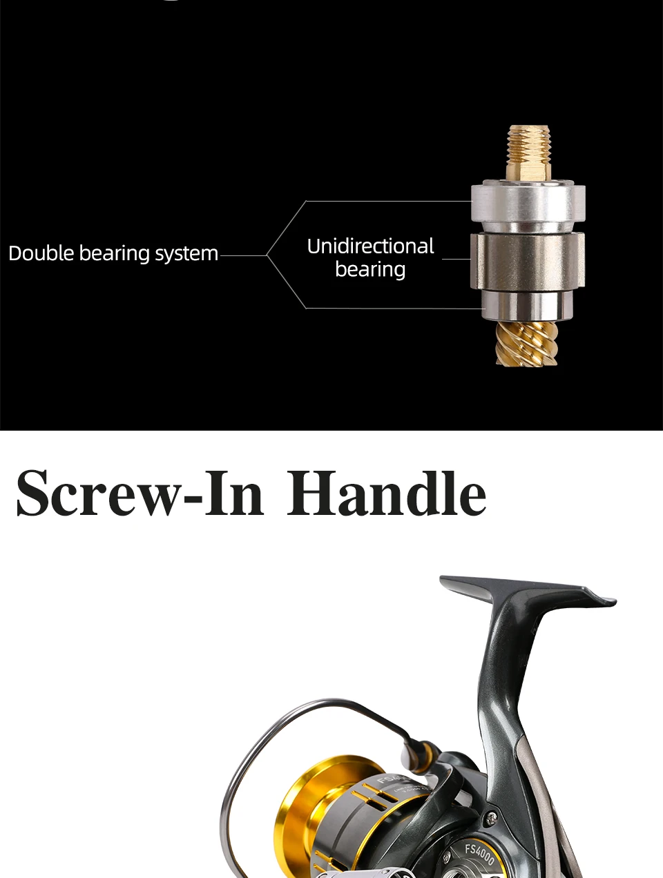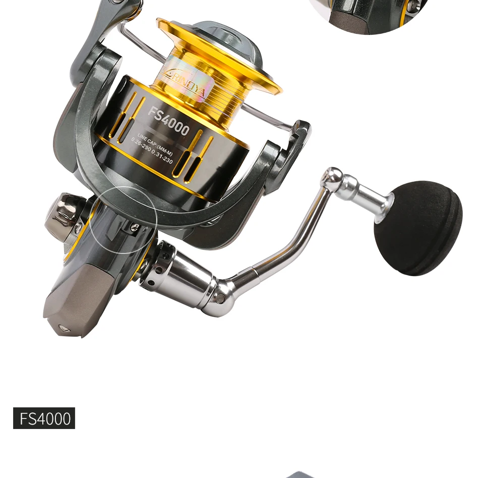 FS 4000 | Weight: 309g | Gear Ratio: 5.2:1 | Bearing: 9+1BB | Max Drag: 11KG | Line Capacity(NO-M):3.5/240 4/200 FS 5000 | Weight: 319g | Gear Ratio: 5.2:1 | Bearing: 9+1BB | Max Drag: 11KG | Line Capacity(NO-M):4/240 4.5/200
