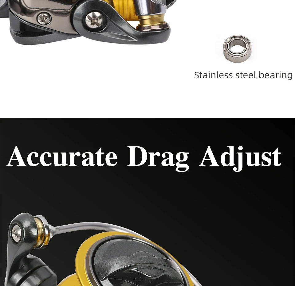 1.Lightweight and super strong composite body and rotor. 2.Special gear drive mechanism for ultra-light handle rotation and super-amooth feeling. 3.Dual propulsion anti-twist line roller 4.Direct drive machined aluminum handle 5.Stainless steel main shaft and main gear shaft 6.Double anodized machined aluminum spool