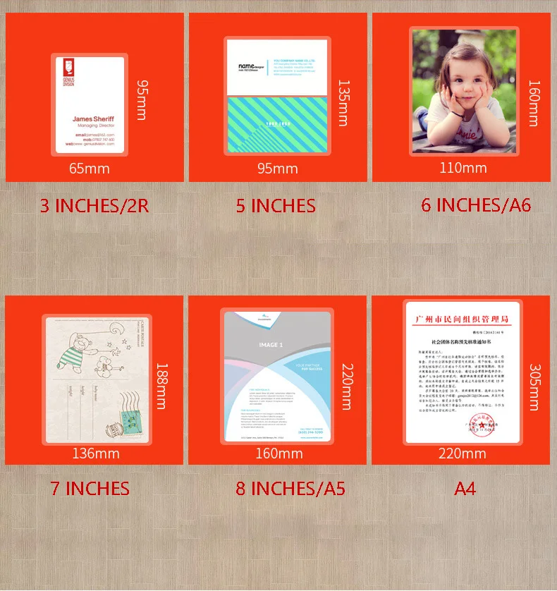 6. Общие размеры обычной копировальной бумаги, печатной бумаги, бумажных документов, листовок, меню и т. д.