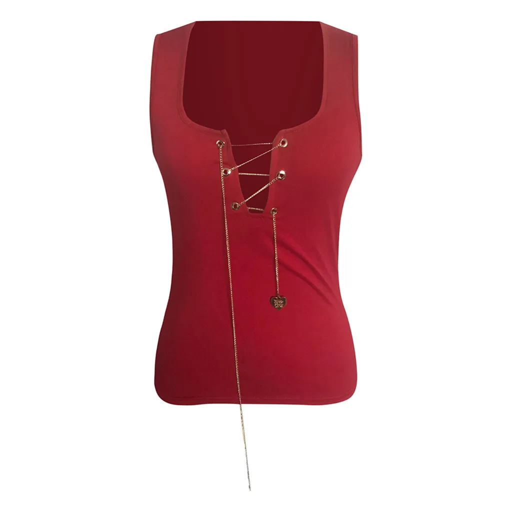 Женский клубный топ с глубоким v-образным вырезом, глубоким вырезом и шнуровкой, на цепочке