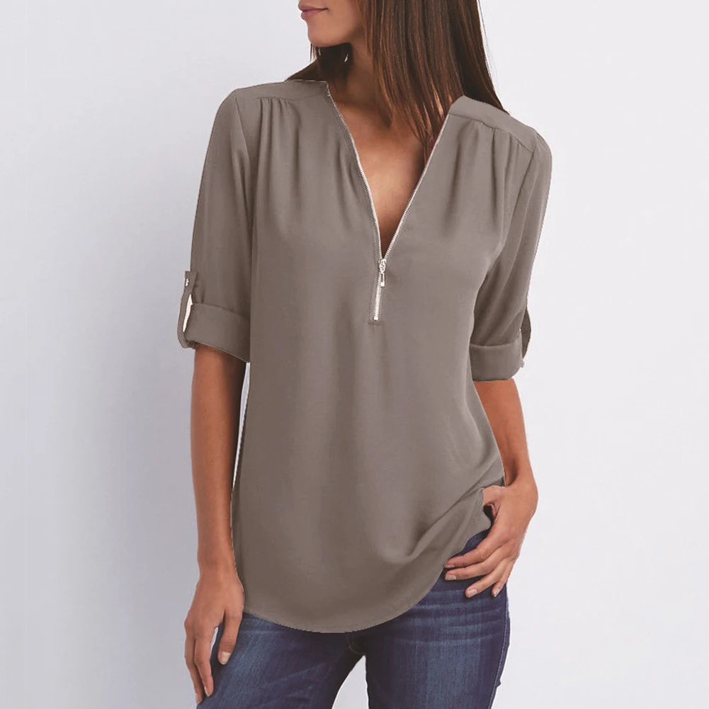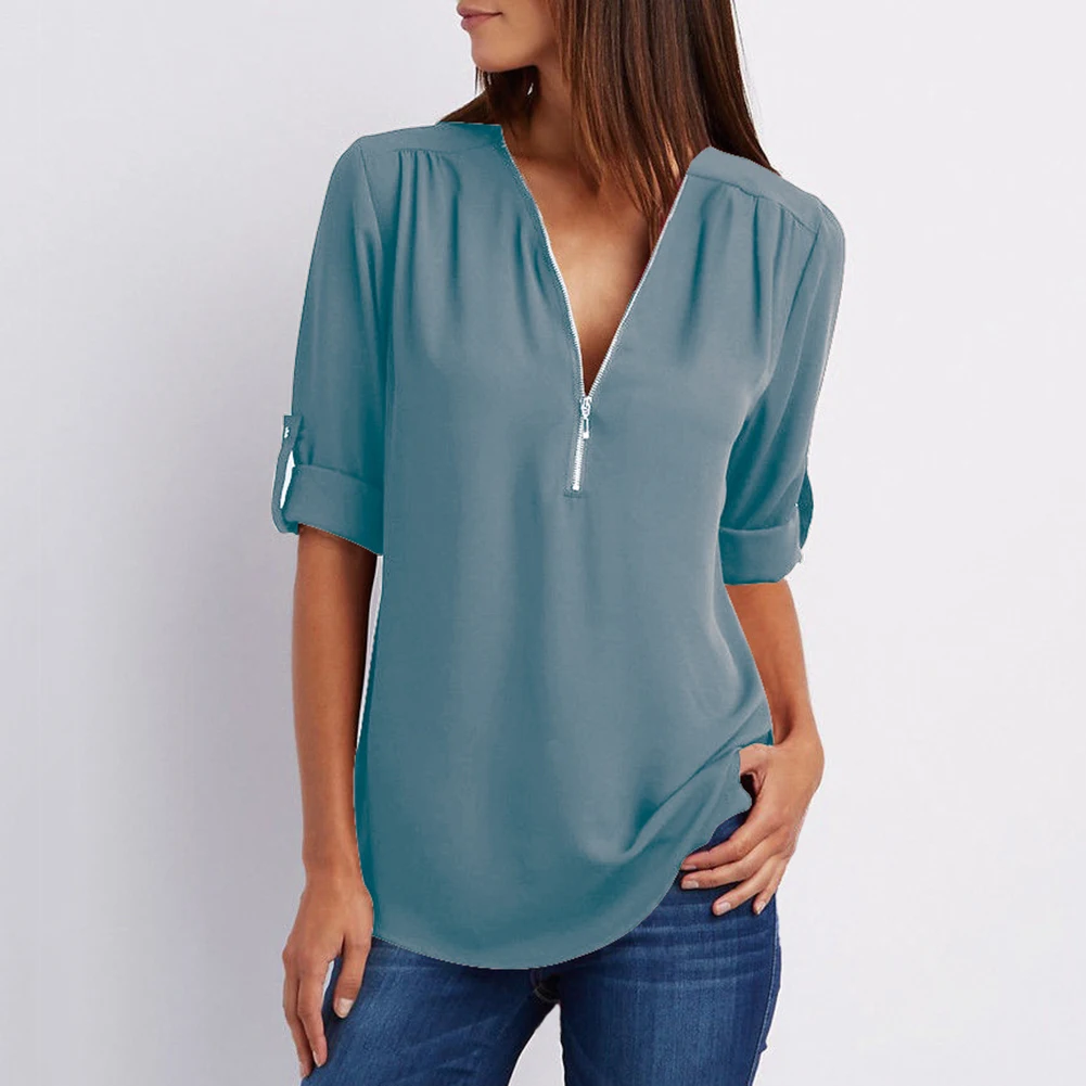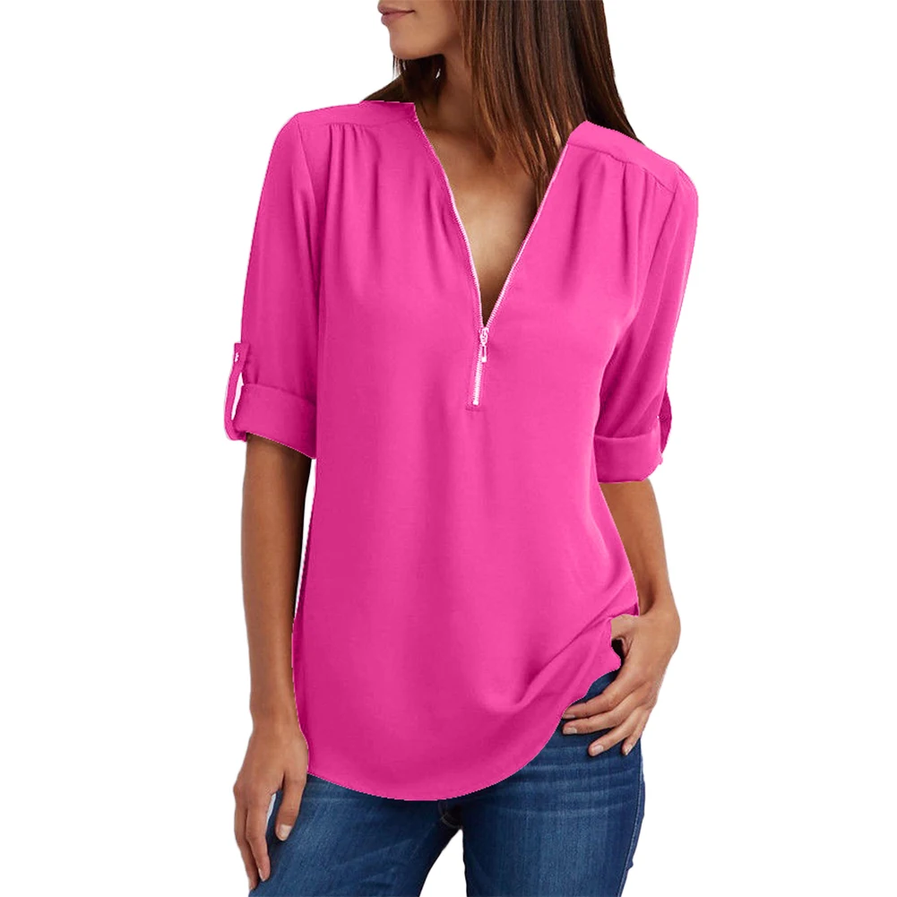 4XL 5XL Plus Size Women T Shirts Fashion Sexy V Neck Zipper Big Size Long Sleeve Pull Sleeve Loose Female T Shirt Top