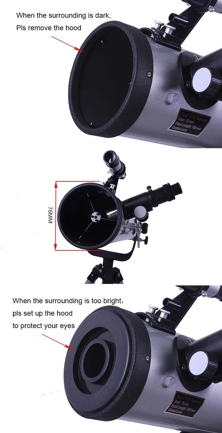 2. Основная функция водонепроницаемости означает, что телескоп может справиться с небольшими каплями дождя или капель воды, но он будет испорчен при массивных условиях воды.Спецификация:Артикул: F70076 астрономический телескоп с большой апертурой